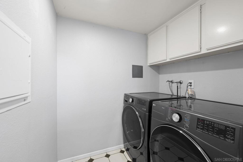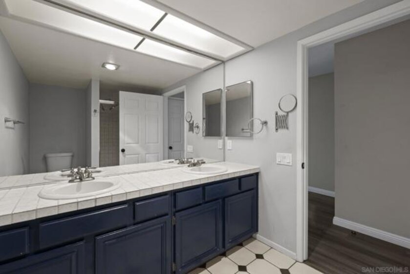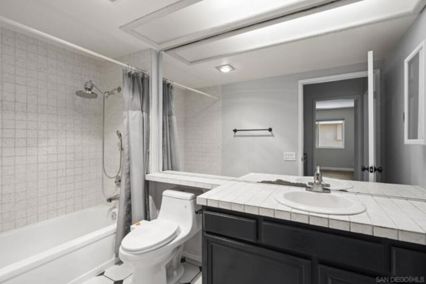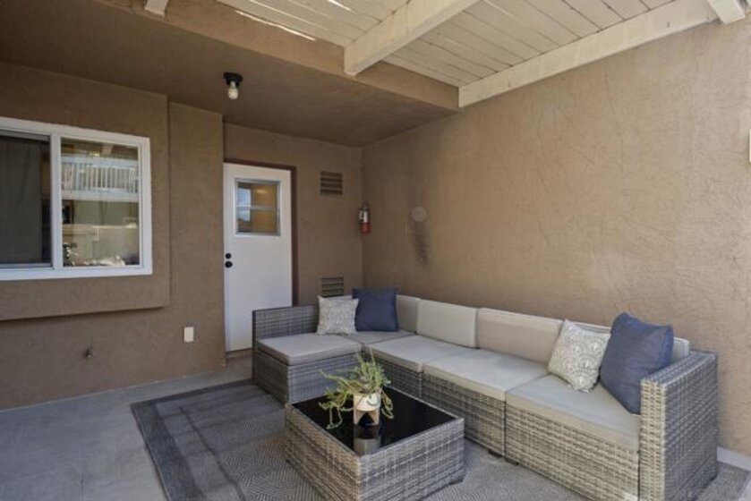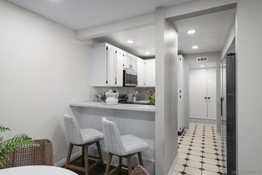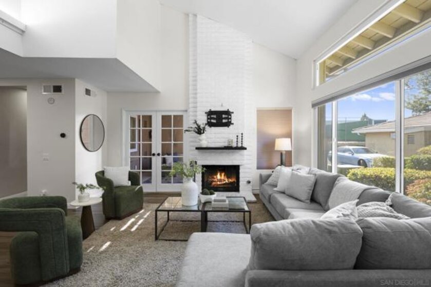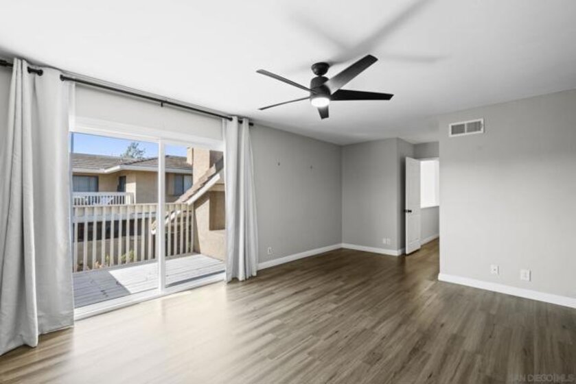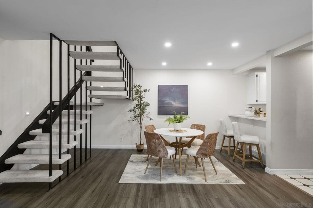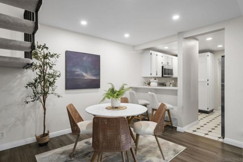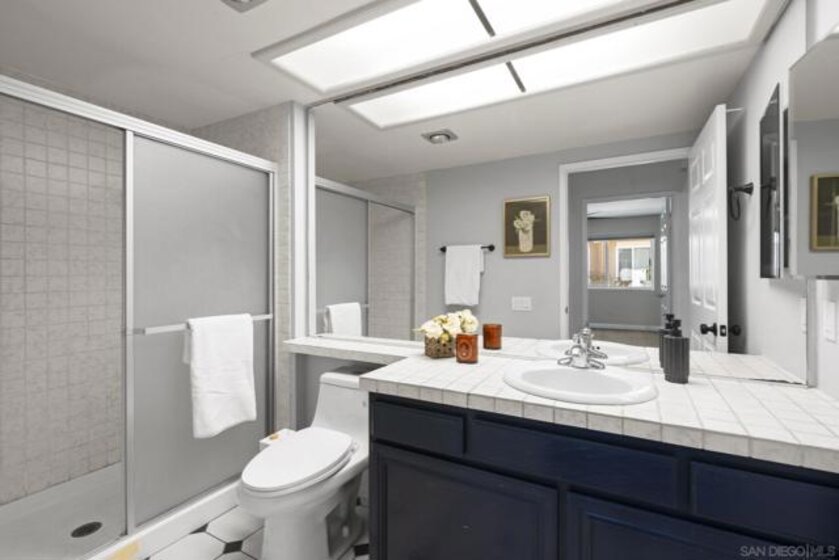 FHA & VA Approved! Welcome to the most desirable floor plan in the highly sought-after Playmor community of Rancho Bernardo. This two-story townhome features a flexible layout with spacious bedrooms, including a full bedroom and bathroom on the main level, ideal for guests, multigenerational living, or a home office. Vaulted ceilings and dual-pane windows create a bright and airy feel, while the private patio offers great space for relaxing or entertaining. Additional upgrades include LVP flooring, ceiling fans in every bedroom, Nest thermostat with central heat and AC, newer water heater (2025), and a dedicated laundry area. HOA INCLUDES water, high-speed internet, cable TV, trash, and sewer along with resort-style amenities including two pools, tennis courts, and a playground. The updated kitchen features stainless steel appliances, a large single-basin sink, recessed lighting, and a built-in wine shelf. Upstairs, the primary suite offers a custom closet and private balcony with sunset views. Secondary bedrooms include walk-in closets for added storage.The home includes a detached garage, one additional assigned parking space, and convenient guest parking. Conveniently located near the I-15, the Country Club of Rancho Bernardo, and within the award-winning Poway Unified School District, this home offers exceptional comfort and convenience.