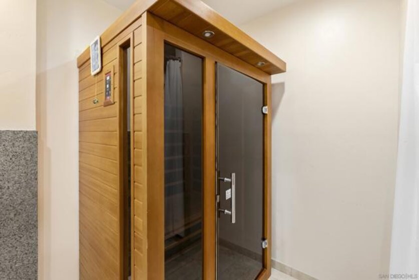 Welcome to resort-style living in the heart of Pacific Beach at The Plaza. This spacious and quiet interior second-floor STUDIO with 1 secure gated garage parking space (#137), offers an exceptional opportunity to enjoy the SoCal lifestyle at an affordable price point. Just minutes from the beach, dining, and everyday conveniences. Elevated above the courtyard, the unit features an oversized 8 ft X 5 ft private patio overlooking the peaceful pool and greenery, creating a perfect indoor-outdoor retreat. Recent upgrades (see suppl) include a new electric panel, updated bathroom w/ new vanity | lighting | quartz counters | refinished bathtub surround, and brushed gold light fixtures throughout, offering both comfort and an elevated style. Convenient community laundry right next door so no neighbor on one side and quiet interior location. Inside, the layout is impressively functional for a studio, with a large 6 ft X 9 ft entry area ideal for additional storage, a full-size kitchen w/ modern appliances, and a convenient eat-at bar that opens seamlessly to the living space. The living area provides ample space for flexible furniture arrangements, making it easy to create distinct living, sleeping, and work-from-home zones. The Plaza community is known for its unmatched amenities, including 5 tennis courts, 4 swimming pools, a well-equipped gym, sauna, BBQ areas, massive community room and extended outdoor deck overlooking the beautiful central water feature, billiard room, library, and lush landscaped grounds that feel like a year-round resort. Located just a 3-minute walk to shopping, restaurants, and nightlife along Garnet Avenue, and less than 2 miles from the beach, this home offers effortless access to everything Pacific Beach is known for. Walk, bike, or cruise to the sand while enjoying a low-maintenance lifestyle that doesn’t break the bank. A rare value in one of San Diego’s most desirable coastal communities.