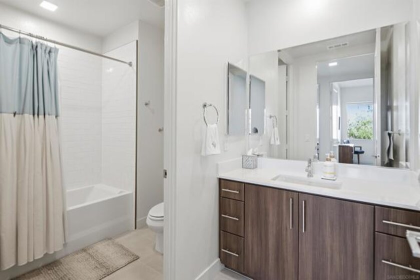 Welcome to this light-filled single level corner residence at Elevate (built 2019 by ColRich)—a 3-bedroom, 2.5-bath condo with 1,648 sq ft and a smart open layout that offers extra privacy. Enjoy the convenience of a private 2-car garage with elevator access, plus seamless indoor-outdoor living from the main living area to a spacious patio. Modern finishes and well-separated bedrooms add comfort and functionality, all within Civita with easy access to community amenities, Civita Park, and the farmers market. Elevate is a contemporary residential community located within Civita, Mission Valley’s vibrant and thoughtfully designed master planned neighborhood. Known for its walkable layout and lifestyle driven design, Civita offers residents everyday convenience with a mix of restaurants, boutique shops, a veterinary clinic, and LA Fitness, all just steps from home. One of the standout benefits of living in Elevate is its close proximity to The Row, Civita’s highly anticipated retail and dining destination, anchored by Jimbo's Naturally. This will be a go to hub for organic groceries, dining, and neighborhood gathering, all just a very short walk away. Just beyond The Row sits the Civita Recreation Center, where residents enjoy resort style pools, spa, fitness center, BBQ areas, lounges, and community spaces designed for both relaxation and connection. At the heart of the neighborhood is Civita Park, an expansive green space featuring walking trails, gardens, amphitheaters, courts, and open lawns that host community events year round. Centrally located in Mission Valley, Civita offers easy access to beaches, downtown San Diego, Snapdragon Stadium, and major freeways, creating a lifestyle that balances urban convenience with outdoor living. Living in Elevate means enjoying modern design, exceptional amenities, and one of the most walkable and connected communities in San Diego.