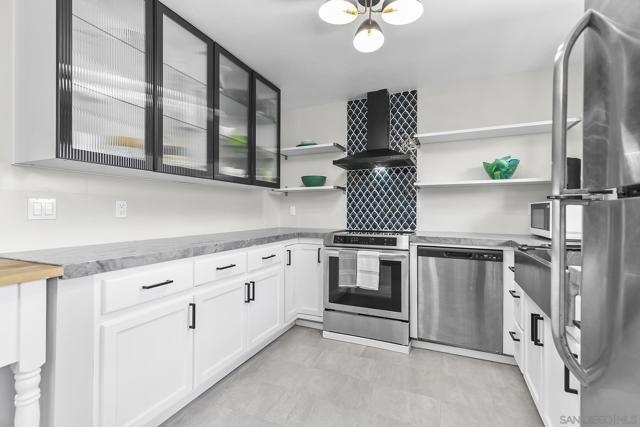 This home offers sweeping Views and stunning sunsets. Perched in one of the neighborhood’s best locations in Bay Park A designer renovation features an open-concept floor plan that seamlessly connects the oversized living room, dining, and kitchen. New upper cabinets with open shelving natural quartzite countertops, Induction cooktop/range, striking 32-inch hammered stainless steel sink. Freestanding peninsula island — perfect for casual dining. Fresh, Modern & Ready for You in Bay Park! Freshly painted, luxury vinyl tile flooring, a custom-built fireplace, and a beautifully tiled walk-in shower. With 864 sq. ft. plus an enclosed patio (total approx. 924 sq. ft.), this home blends style, comfort, and convenience. Just minutes from Mission Bay, local restaurants, shopping, the I-5 freeway, and the San Diego Trolley line with direct service to UCSD and downtown. Fresh, Modern & Ready for You in Bay Park! Move right in and enjoy a bright open floor plan, quartzite counters, induction cooktop, and beautifully tiled walk-in shower. Close to shopping, and coastal adventures. With 864 sq. ft. plus an enclosed patio (total approx. 924 sq. ft.), this home blends style, comfort, and convenience. Enjoy Bay views and night lights from your extended enclosed patio and bedroom. You will love the comfort of this home.
