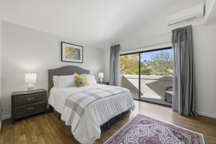 Rarely on the market Canyon Rim’s largest floor plan END UNIT featuring 2 beds 2.5 baths and 3 decks. Highly desirable Canyon Rim community is located just 4 miles to the beach! SOLAR. Entire interior painted 2023. California indoor outdoor living at its best with attached deck off the kitchen and dining area, oversized spacious 2 car garage with full-sized washer/dryer and ample storage space. Dual pane windows and doors throughout. Spacious primary bedroom with newly added AC/heating system, dual sink vanity, walk in shower and attached deck overlooking Canyon Rim’s lush and mature landscape. 2nd en-suite bedroom with attached deck and upgraded bath. Additional seller upgrades include kitchen remodel including granite countertops, tiled backsplash, appliances, refaced kitchen cabinetry, whole house water filtration and reverse osmosis system, blinds and drapes throughout. Laminate flooring and recessed lighting throughout. Only ONE adjacent neighbor and no neighbors above or below. This peaceful and beautifully landscaped community offers 2 pickleball courts, 2 tennis courts, solar heated sparkling pool and spa, clubhouse and BBQ. Easy access to freeways, the beach, nearby shopping and restaurants set back in beautiful Rose Canyon. HOA installed BRAND NEW ROOF 2024. Termite Fumigation to entire community 2024 and painted all exterior. Welcome Home!