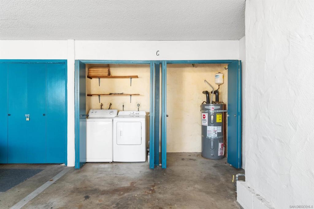 Enjoy spectacular Tecolote Canyon and mountain views at this 2-story Bay Park condo. Move-in ready, this freshly painted 2 bed, 1.5 bath home features an upgraded kitchen with all appliances, 2 spacious bedrooms upstairs, and 5 closets—including a walk-in closet. A generously-sized covered balcony with tiled floor extends the living space. Two parking spaces are included—one in the covered carport directly below the home and one space in the community lot. The washer and dryer as well as additional storage are in a private locked area in the carport. The community features beautifully landscaped grounds and sparkling pool. The entire complex was painted in 2022 and now boasts seascape colors. Nestled in an amazingly quiet community in a residential area, this home is close to Clairemont Village Shopping Center with grocery, restaurants, cafes, and more. Minutes from I-5, Mission Bay Park, the ocean, downtown, and other freeways. With its stunning views, tranquil setting, and proximity to the coastline, you won’t want to miss out on this gem!