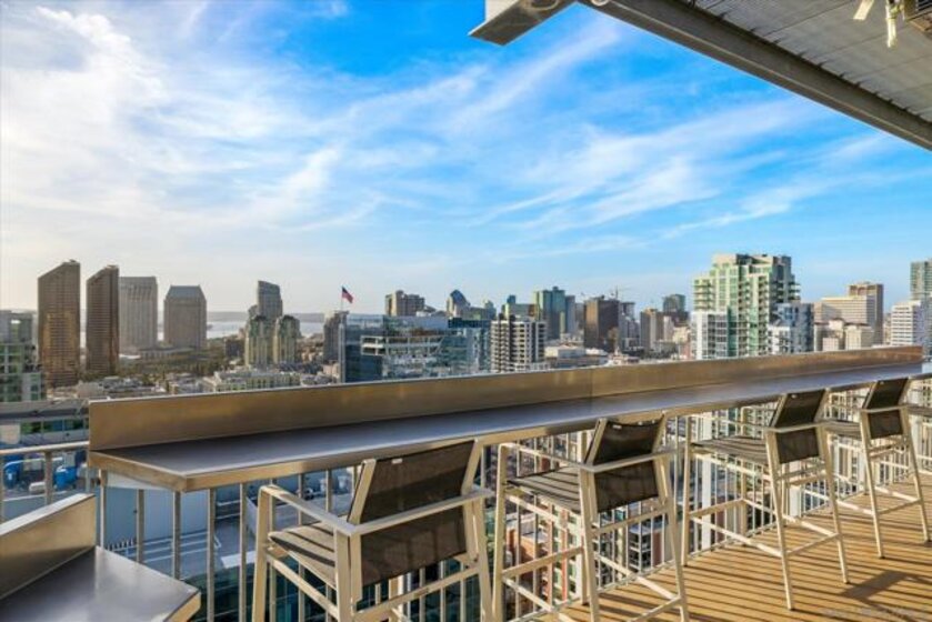Get ready to upgrade your lifestyle here at the ICON high rise located in the heart of downtown San Diego. Having a walk score of 98/100, everything from restaurants, coffee shops, bars, shopping, grocery stores and of course Petco Park are all just a few steps away. Welcome to one of the largest one-bedroom, plus office space, floors plans in East Village, this SE corner residence gets an abundance of natural light and has lovely tree top views. This is one of the quietest units in all of downtown located on the inner sanctuary courtyard with eye catching sculptors and a radiating wall of glistening reflective wind elements to enhance your views. There is a separate area for a home office and an extra half bath for your guests. Bedroom en-suite has dual vanities and a walk-in closet. The expansive floor plan is flooded with natural light, thanks to the floor-to-ceiling windows that highlight the beauty of the courtyard. Enjoy a peaceful and private ambiance, with a thoughtful design that maximizes comfort and style. Ideal for those who appreciate a tranquil setting with easy access to city living, this condo truly feels like a sanctuary. Continued in supplement below... ICON has the best condo rooftop in all of downtown San Diego, named the ICON Skybox. This roof top has the most amazing views of the bay and downtown skyline. This amazing terrace has lots of seating, BBQs, a large screen TV and heaters. There is even a tiered seating section looking directly into Petco Park to watch baseball games and other events such as concerts etc. Other amenities include a large Fitness Center, Community Lounge with full kitchen, business center, TV, and workspace, Movie Theater, shared EV charger, 24/7 front desk staff and an onsite property manager. Don’t miss the opportunity to make this peaceful oasis your own!