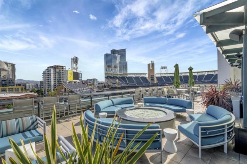 Live where the energy of the city meets the calm of home. This thoughtfully designed 2 bedroom, 2 bath residence offers an effortless blend of comfort and sophistication inside one of downtown’s most iconic settings — quite literally within the ballpark itself and steps from FIT Athletic, San Diego’s premier training facility, and a host of restaurants and entertainment venues. Inside, clean architectural lines, expansive windows, and an open-concept living space create a seamless flow for both everyday living and entertaining. The kitchen anchors the home with generous counter space and modern finishes, opening to a bright living and dining area designed for connection. The primary suite is a private retreat with a spacious bath and ample storage, while the second bedroom offers flexibility for guests, a home office, or additional living space. Morning yoga on the viewing deck. An afternoon game in your backyard. An evening workout next door. Urban convenience, elevated.