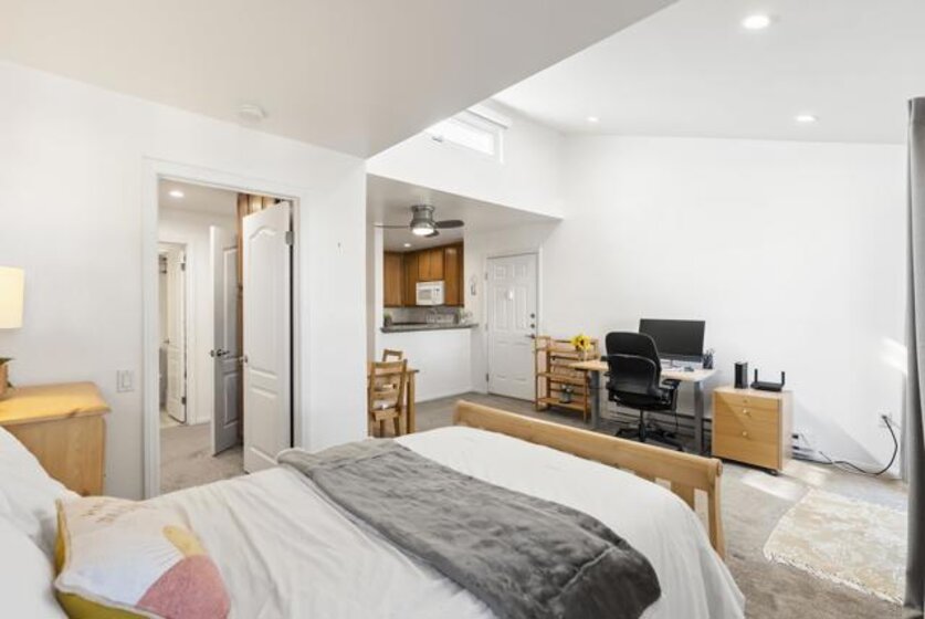 LOWEST PRICED CONDO IN ALL OF 92123 and CENTRAL SAN DIEGO! Stylish, efficient, and full of natural light, this beautifully updated Serra Mesa studio makes the most of every inch of its 441 square feet. The layout feels surprisingly spacious with vaulted second-story ceilings, new recessed lighting, a ceiling fan, dual-pane windows, and fresh paint throughout. The main living area easily accommodates a queen-size bed, sofa, TV setup, and even a small workspace, while the charming dining nook offers (see suppl) a dedicated spot for meals or study sessions. A private balcony adds an inviting outdoor extension of the space, perfect for morning coffee or fresh air. The full kitchen is a standout for a studio, featuring granite countertops, electric appliances, and an impressive amount of cabinet storage. New carpet and the overall clean, move-in-ready presentation make this home easy to love from the moment you step inside. Located in the heart of Serra Mesa, this home offers unmatched central convenience with quick access to Mission Valley, Kearny Mesa, SDSU Mission Valley, Snapdragon Stadium, the Convoy District, and major freeways including the 163, 805, 15, and 8. Designated parking spot #79 in front of unit. Its affordability makes it an ideal opportunity for first-time buyers looking to enter the San Diego market, students wanting an alternative to renting near campus, or investors seeking a low-maintenance rental in a consistently high-demand neighborhood. This charming studio is a rare find at this price point and offers a smart way to own a piece of San Diego.