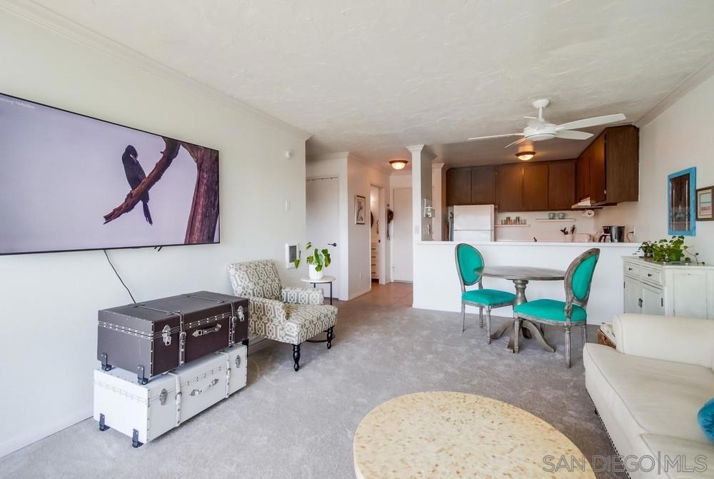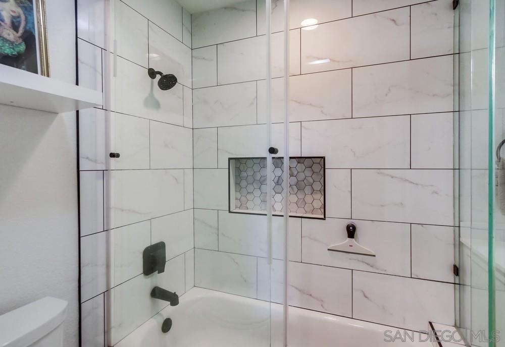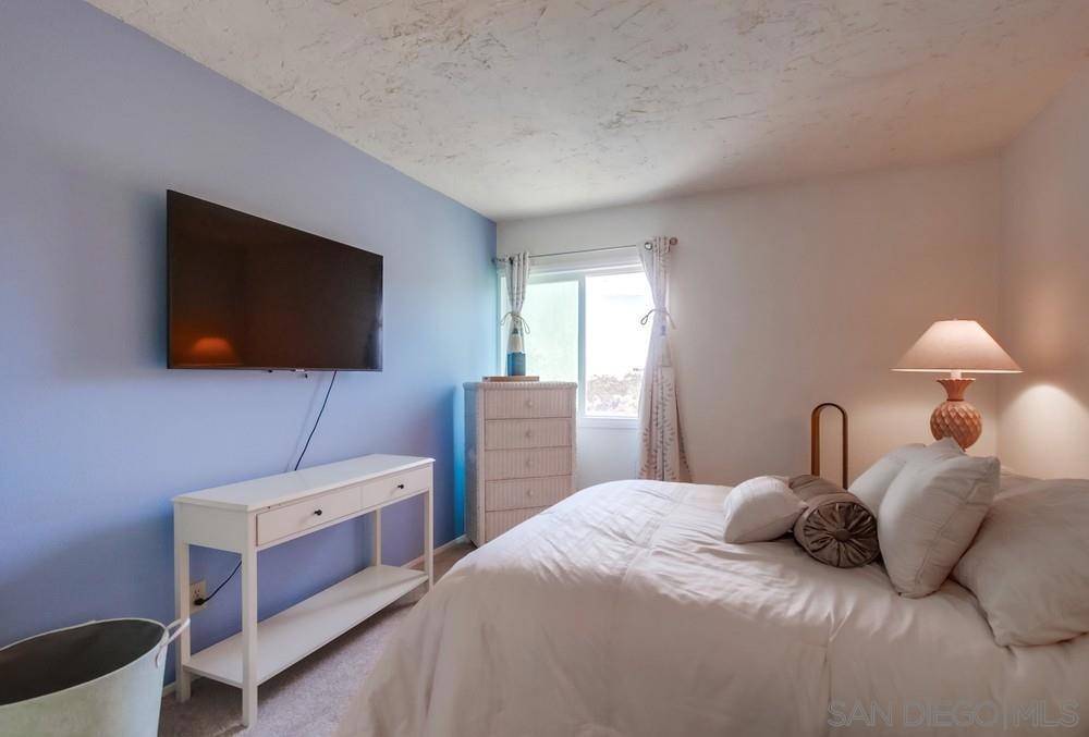 This beautiful top floor 1-bedroom, 1-bath home is located in the highly sought-after Bay Ho condominium complex. In addition to a spacious, open-concept floor plan, the unit has been highly upgraded with a gorgeous, remodeled bathroom, updated kitchen counters, new high-end plush carpeting, new dual pane windows, French slider and a huge walk-in closet. The unit also features a fantastic exterior deck area with gorgeous bay views. Other amenities include one assigned parking space. A community pool, spa and BBQ area. Close to some of the best beaches in San Diego, wonderful restaurants, entertainment and all that San Diego has to offer. This is an opportunity not to be missed!