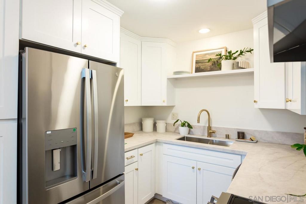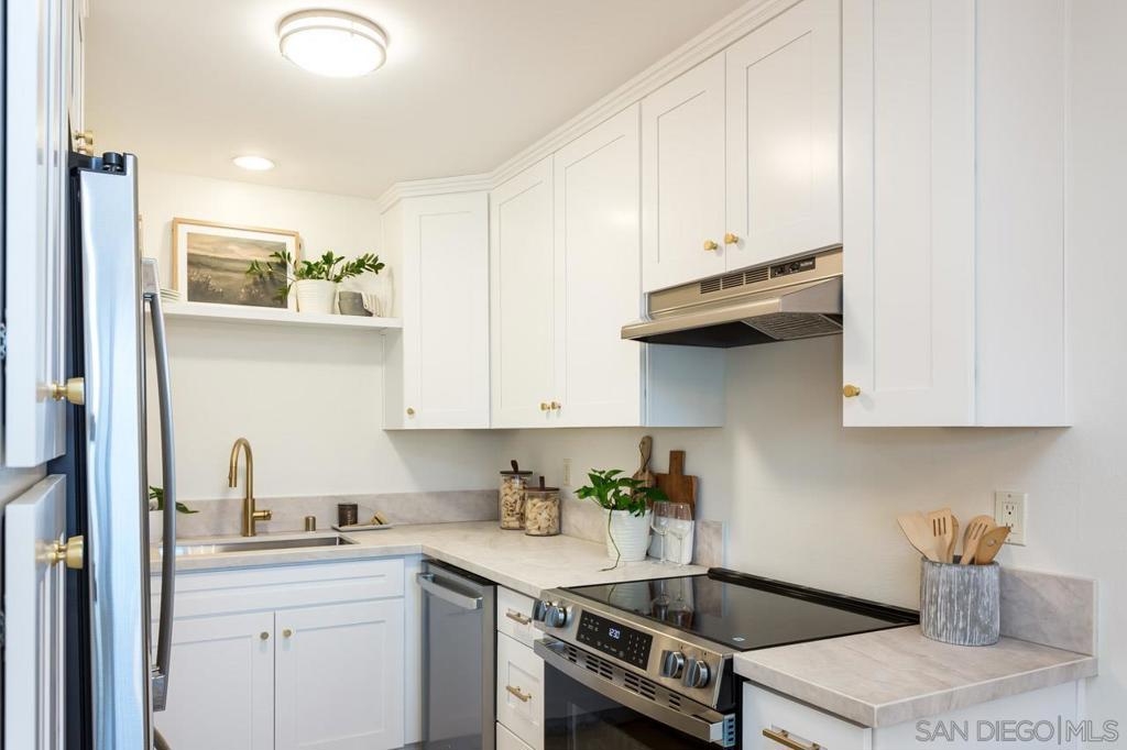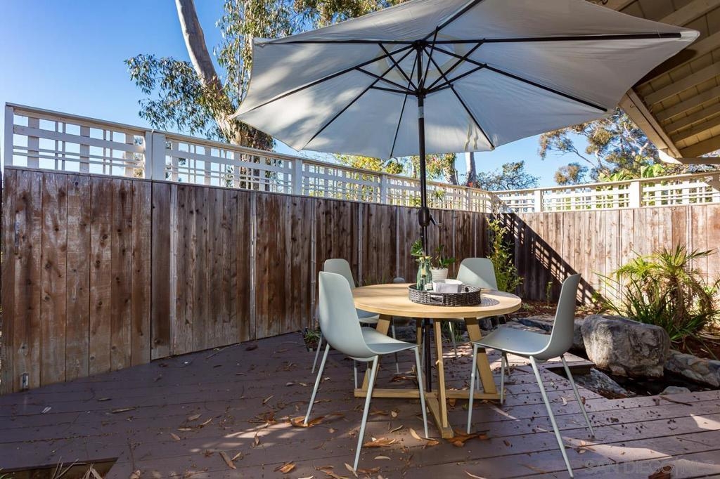 Beautifully renovated end-unit townhome in Playmor La Jolla. This single-level home features a brand-new kitchen with timeless shaker cabinets, stainless steel appliances, honed quartz countertops, brass finishes, and abundant cabinet space with pantry. Light-filled interiors flow to a private enclosed patio with deck, perfect for indoor/outdoor living. Luxurious new bathroom offers a trendy vanity, walk-in shower with glass enclosure, and large-format tile. New LVP flooring & the comfort of in-unit laundry. A modern, stylish retreat near UCSD, shopping & beaches. Beautifully renovated end-unit townhome in Playmor La Jolla. This single-level home features a brand-new kitchen with timeless shaker cabinets, stainless steel appliances, honed quartz countertops, brass finishes, and abundant cabinet space with pantry. Light-filled interiors flow to a private enclosed patio with deck, perfect for indoor/outdoor living. Luxurious new bathroom offers a trendy vanity, walk-in shower with glass enclosure, and large-format modern tile. New LVP flooring & the comfort of in-unit laundry. A modern, stylish retreat near UCSD, shopping & beaches.