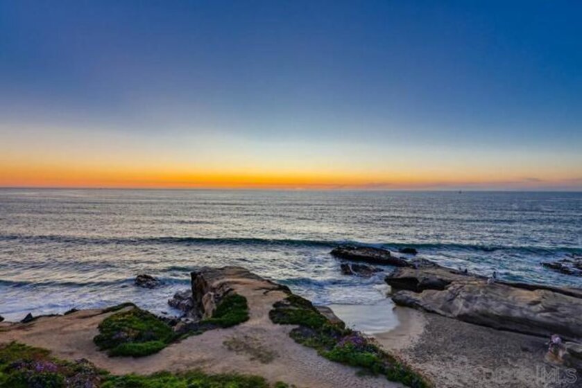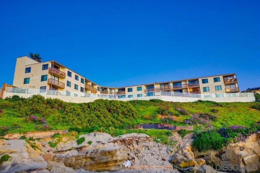 OCEANFRONT!! This amazing unit has forever panoramic ocean and coastal views from most every room! Live the dream of having the beach at your door! Hear the ocean every morning as you wake up and watch the sunsets every evening. Vacation 365 days a year! This home is in great condition with white oak cabinets, quartz counters, designer finishes, laminate wood flooring, a cozy electric fireplace, and bifold doors to immerse you in the incredible views! Spacious, light, and bright 1 bedroom. Single-level unit with an amazing balcony overlooks the pool, BBQ and Ocean. Smell the ocean and feel the breeze! This is a rare find in South Ocean Beach! Amenities include an elevator, pool, BBQ area, community garden, two guest suites that are available for residents at the amazing price. Two coved beaches are just below you, and yes, it does have guest parking also!!!