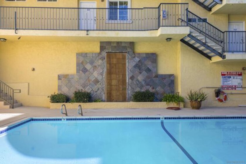 This is the rare top-floor, corner Collwood Point unit you’ve been waiting for. **Property has a VA assumable loan at a 5.5% interest rate for qualified buyers.** By securing the building's premier corner placement, this 2-bedroom, 2-bath home offers a level of privacy and natural light that lower-floor units simply cannot match. Whether you are looking for a high-performing investment or a turnkey primary residence, this property is positioned for maximum impact. The main living area features vaulted ceilings and high-set windows creating an expansive, sun-lit atmosphere. This open, inviting space serves as the central hub of the home, flowing seamlessly through French doors to your private, pergola-covered patio. It’s the perfect spot to extend your living space into the fresh air, whether for morning coffee or an evening drink. When it’s time to host, the kitchen is fully dialed-in with sleek granite countertops, stainless steel appliances, and ample cabinetry to keep everything organized. The floor plan is a true game-changer; with bedrooms located on opposite sides of the home, you have a private sanctuary perfect for a roommate or a quiet, dedicated work-from-home setup. Life here is designed for effortless daily living. Enjoy the convenience of in-unit laundry and skip the parking hunt with your own dedicated covered spot. The Collwood Point lifestyle really shines in the courtyard, spend your weekends lounging by the sparkling pool, relaxing in the spa, or firing up the built-in BBQ station for a sunset dinner with friends. Located just minutes from the energy of SDSU, premier shopping, and dining, this isn’t just a place to live, it’s a place to thrive. With fast, easy access to both the I-5 and I-15, you are perfectly situated to reach downtown, the beaches, or North County with ease. It is rare to find a top-floor corner unit with this specific combination of upgrades and location. This is your chance to secure the best position in the entire building.