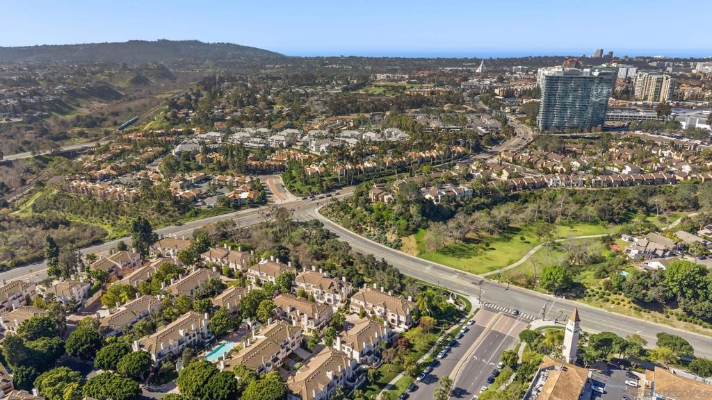Tucked within the elegant, gated community of La Florentine at Renaissance, this refined townhome offers a quiet, upscale lifestyle. Inside, a spacious and open floor plan is elevated by high ceilings and hardwood oak floors throughout. The kitchen is designed for both everyday living and entertaining, featuring custom white cabinetry with embedded drawers, quartz countertops, a large island, Thermador appliances, and a wine refrigerator. Thoughtful upgrades include recessed lighting, an alarm system, tile fireplace, custom curtains, and a full house water filtration system. Just outside, a generous front patio with slate flooring provides the perfect setting for barbecuing, dining Al Fresco, or a morning coffee. The primary suite is a true retreat with a large walk-in closet, private balcony, and a spa inspired bathroom that includes a soaking tub and shower behind a large frameless glass wall and marble flooring. Additional highlights include an oversized two car garage with storage on the lower level, as well as access to community amenities including a pool and hot tub. Set in the heart of UTC, this beautiful Italian style village offers a rare blend of privacy, high end living and everyday convenience. Residents are moments from a multitude of restaurants, the UTC shopping mall, nearby parks, walking trails, and everyday essentials. The location also provides close proximity to beaches, UCSD, and highly rated San Diego Unified schools.