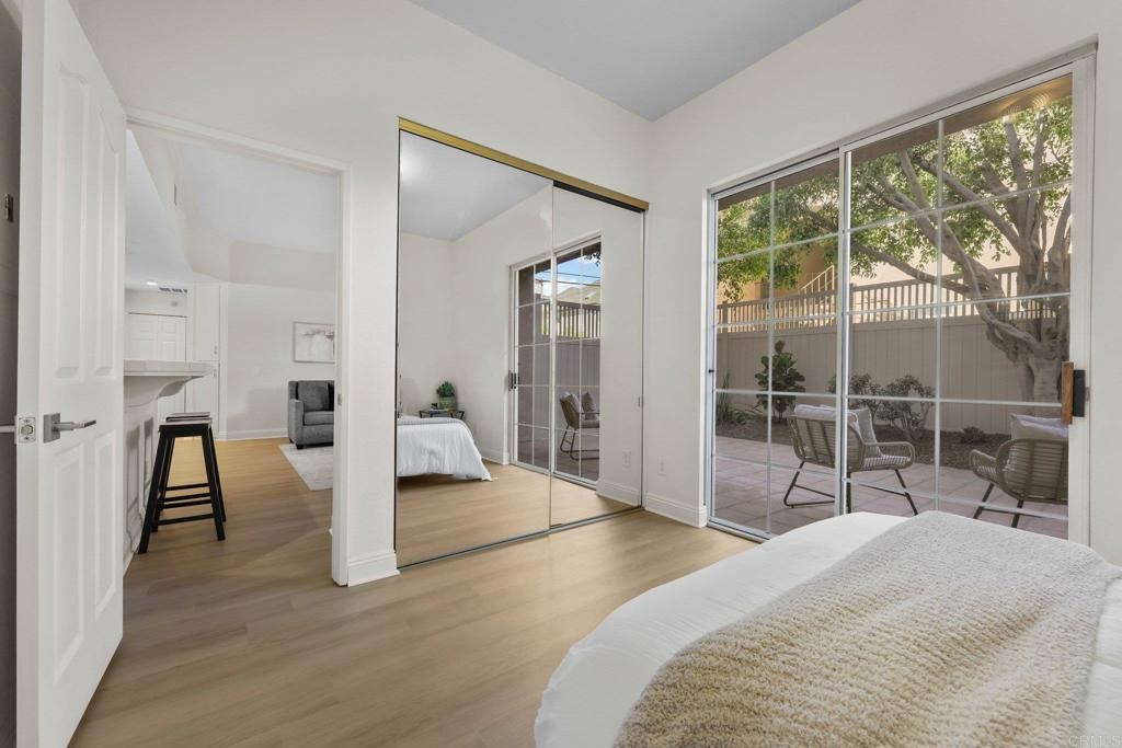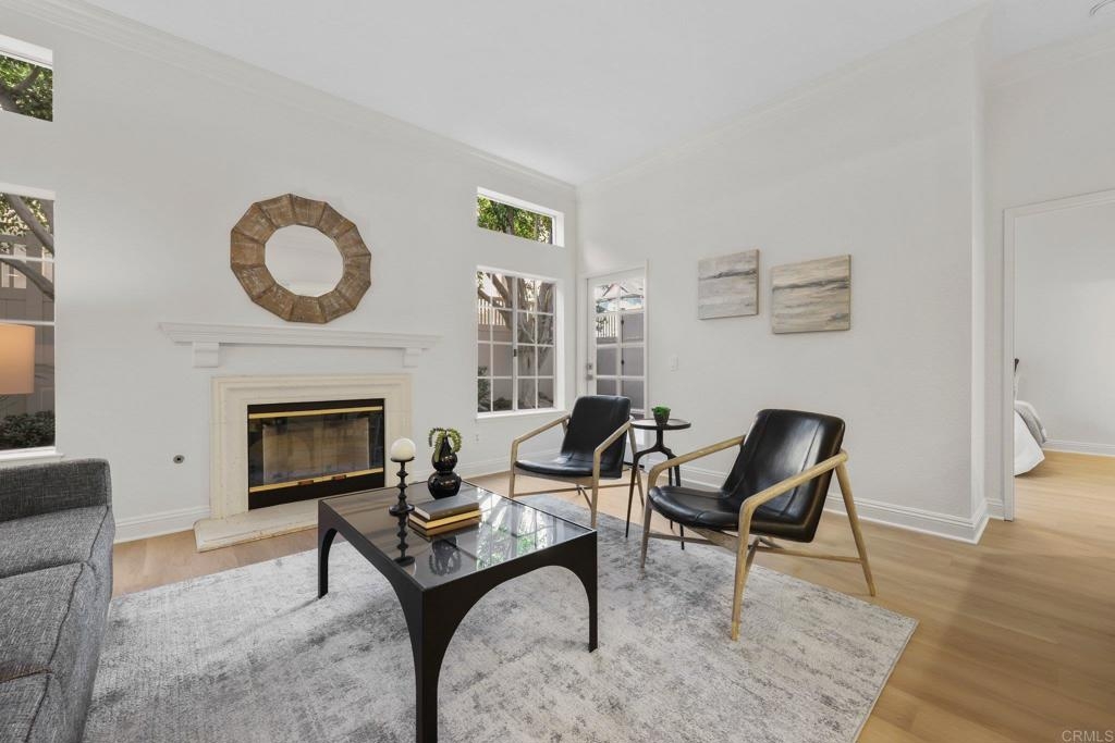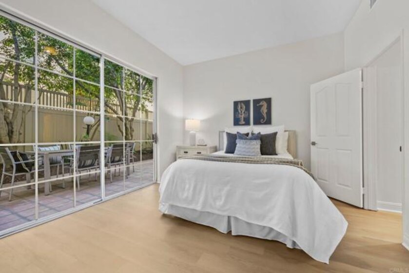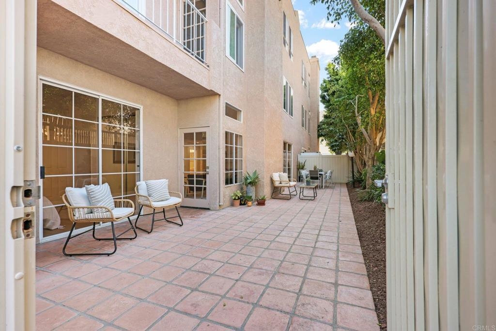 Rare single-story condo in Hillcrest (92103) featuring an oversized private patio, soaring ceilings, and direct street-level entry. This light and bright 2-bedroom, 2.5-bath home offers an open, airy feel with high ceilings, fresh paint, new flooring, updated door hardware, and stylish staging — truly move-in ready. The open-concept living space is anchored by a cozy fireplace and flows seamlessly into the kitchen, which features a breakfast bar with seating, creating the perfect setup for casual dining, entertaining, or connecting while you cook. The living area opens to an exceptional oversized private patio, accessible from both bedrooms and the living room, creating a true indoor-outdoor lifestyle ideal for entertaining or everyday enjoyment. A rare private street entry adds privacy and a desirable townhome-style feel. Both bedrooms offer generous closet space, complemented by excellent storage throughout the home. The thoughtfully designed kitchen features stainless steel appliances, a custom backsplash, and a large walk-in pantry. The pantry is conveniently shared with the laundry area, which includes a full-size stackable washer and dryer and is discreetly separated from the kitchen by a pocket door. The 3-story gated building offers elevator access for added convenience and security. The home also includes two gated underground parking spaces, a highly sought-after feature in this location. Ideally located in San Diego’s vibrant Hillcrest neighborhood, just minutes from Balboa Park, top restaurants, shopping, major freeways, Mission Valley and renowned medical centers. This home offers the perfect blend of comfort, privacy, and urban living.