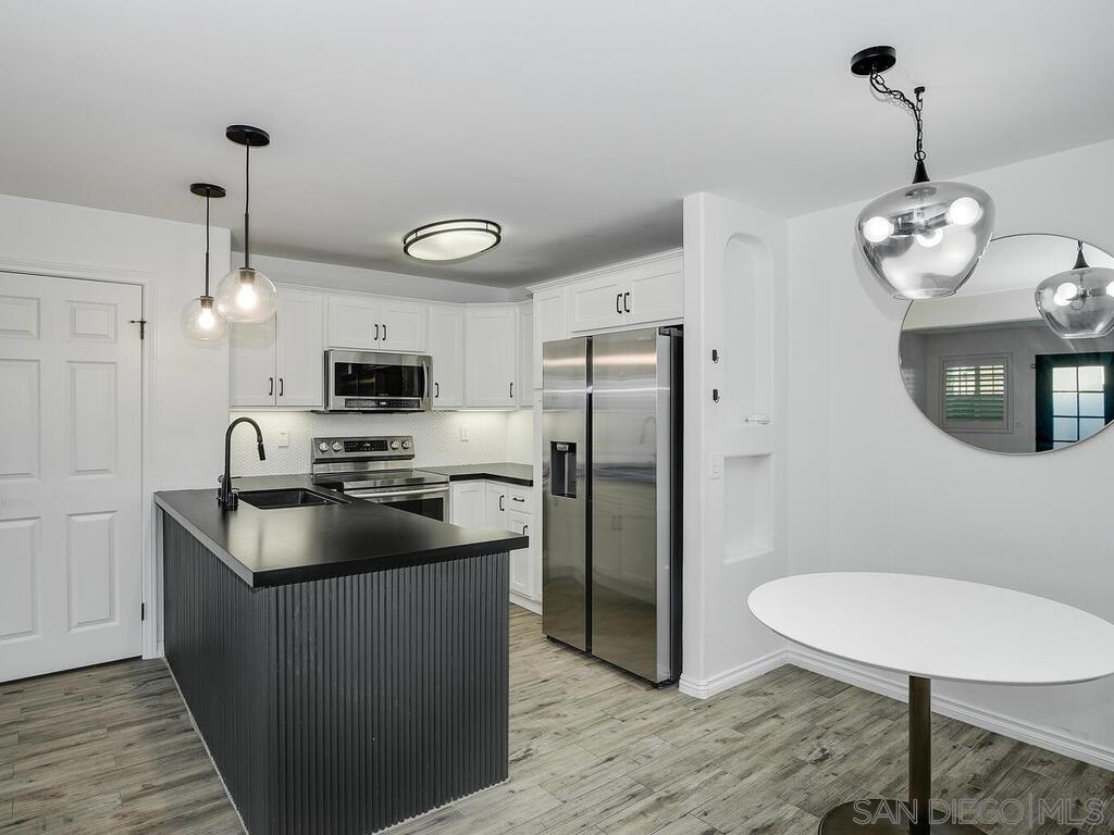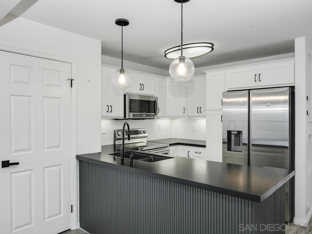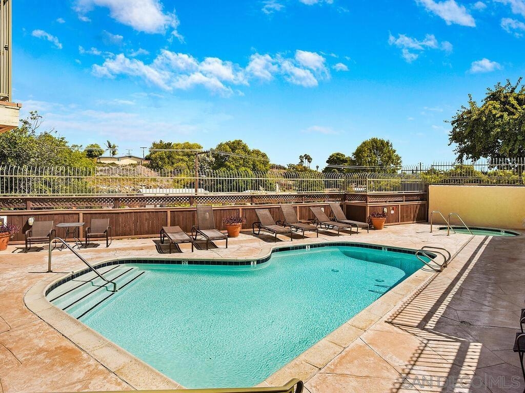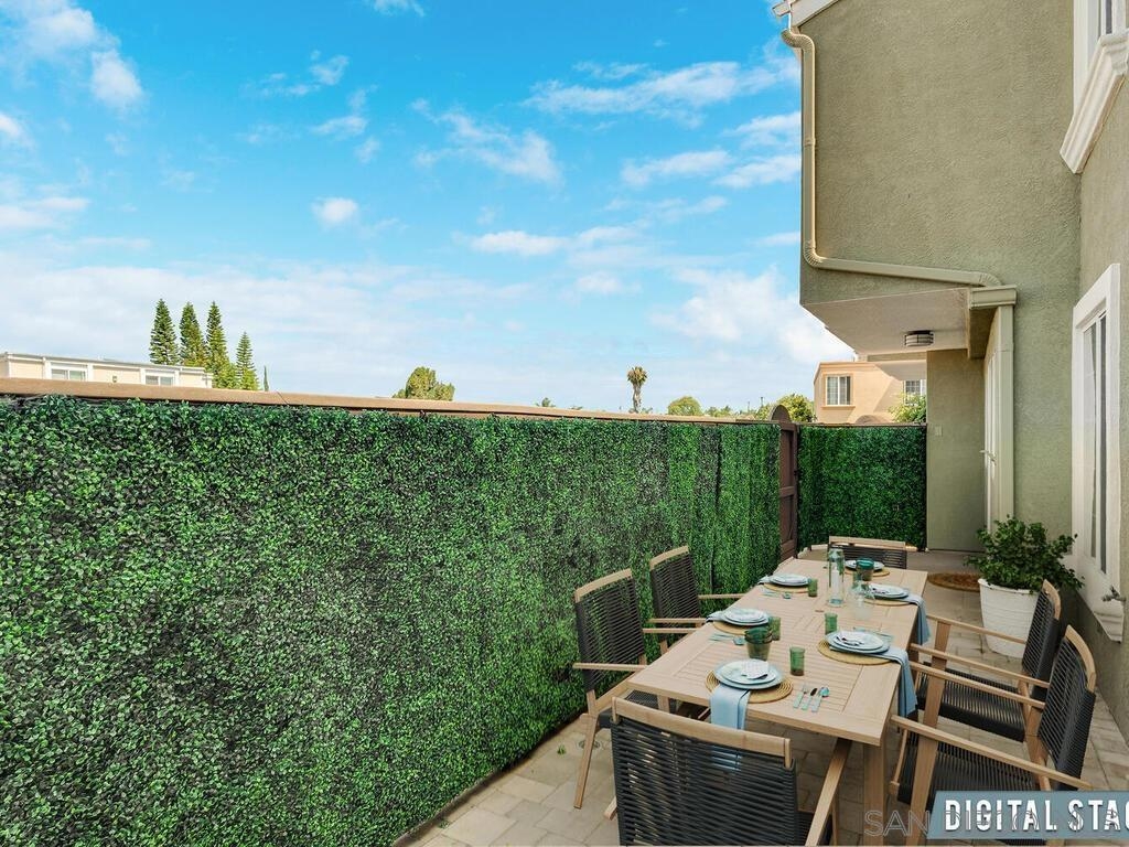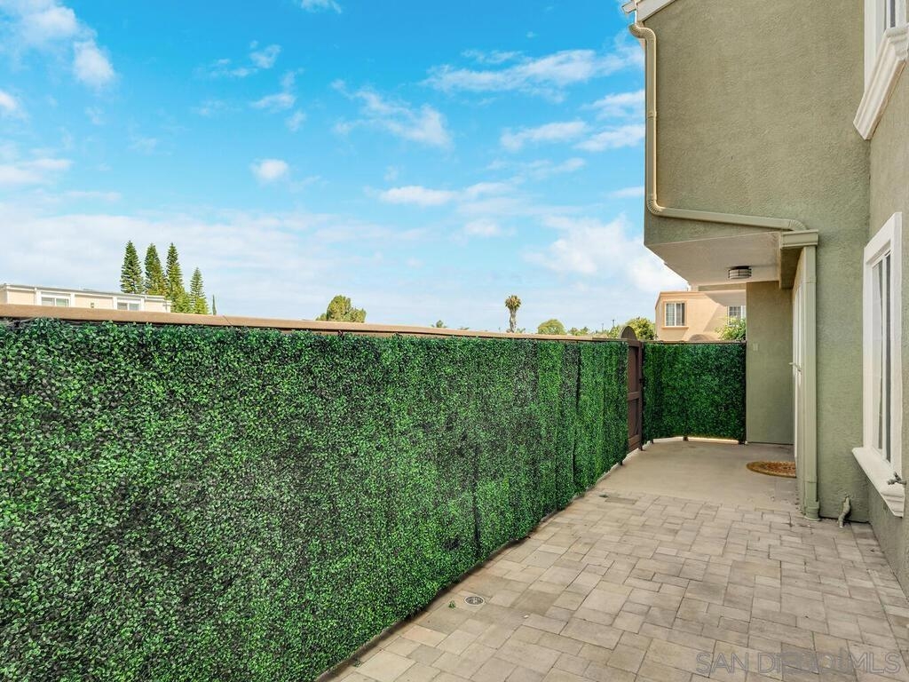 Unit 118 @ Balboa Ridge is one-of-a-kind. Upon entering you will quickly notice the indestructibly easy-to-clean tile floors and the calming custom paint. The kitchen and master bathroom were recently tastefully remodeled. All the lighting is new—Full-size Samsung washer/dryer in unit. Pride of home ownership oozes from this property. Timeless style and designer touches provide subtle extras you have to see to appreciate. The patio has custom paver tiles and superior UV-resistant quality artificial foliage/hedge boxwood green panels to cover the fence and welcomes you into this inviting space. You will enjoy San Diego’s picturesque sunsets in luxury. Both A/C units are newly replaced to keep you cool and plantation shutters will keep things as private as you wish. Rare parking directly in front of the unit. This gated community is well-maintained with amazing amenities including three pools, a sauna, barbecues, a gym, and beautifully manicured grounds with a low HOA. This central Clairemont location provides easy access to all the best of San Diego.