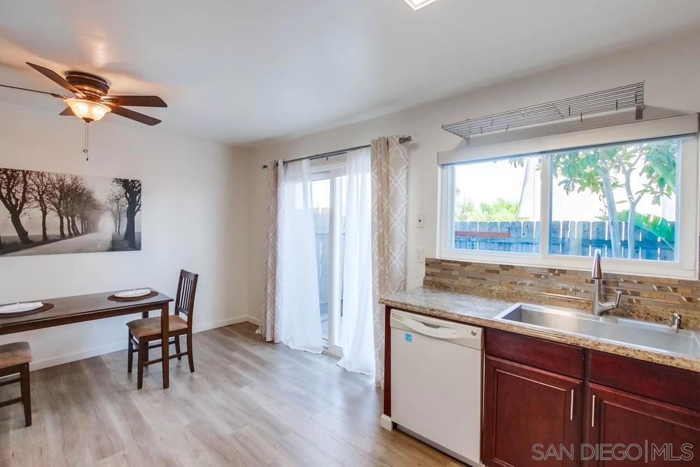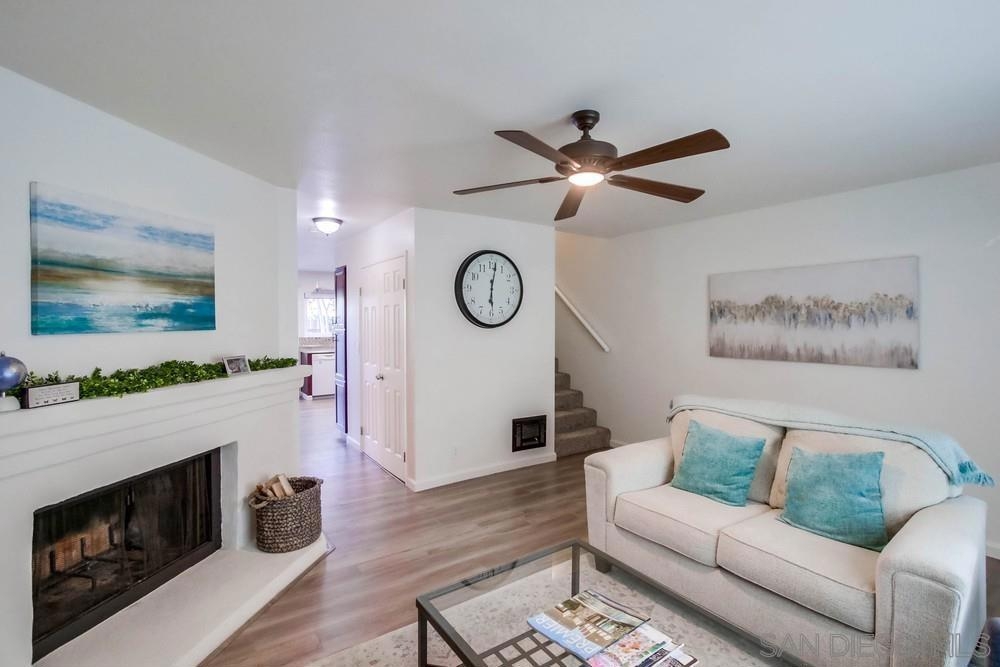 Light and bright renovated Clairemont townhome with easy access to fun, food and freeway! No one above or below you! This spacious two-story townhome is a ground floor end unit. This excellent use of space has a large living room with fireplace and top-down blinds, in-unit full-sized laundry, and upstairs linen closet . The stunning kitchen features a modern backsplash with a stainless steel farmhouse sink and 2 drawer oven! The dining area has a sliding glass door that opens up to your very own private patio - perfect for a barbeque with friends or family! Both bedrooms have laminate floors and are generously oversized with large mirrored door closets with lots of storage space. Easy access to major freeways and close to stores, shopping centers, hospitals, and restaurants. Downtown San Diego, Mission Bay, and beaches are all within a few minutes drive. Must See! Sewer: Sewer Connected Topography: LL