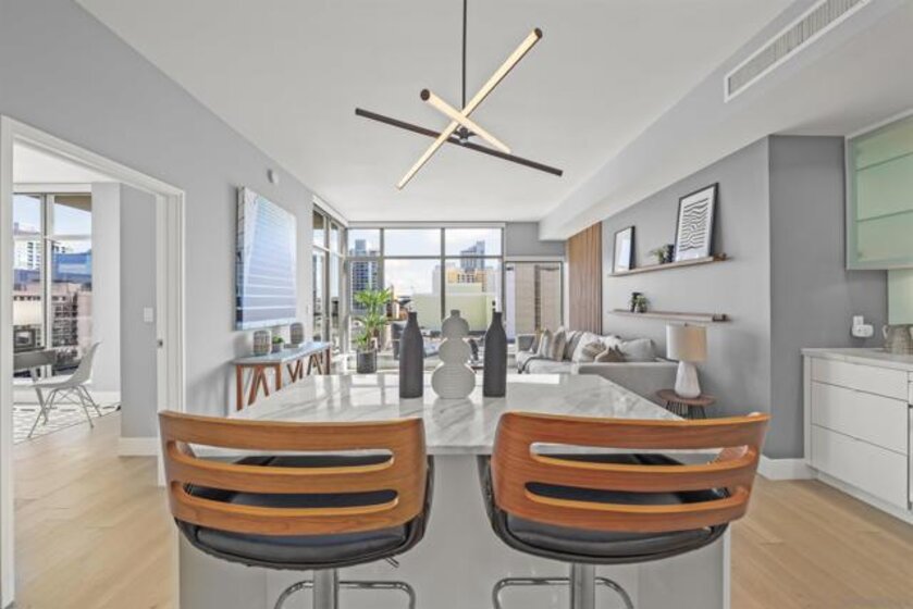 Live at the center of it all in this bright and inviting 2-bedroom, 1.5-bath condo in the desirable Alta building. With an open layout, recently installed hardwood flooring and bathrooms tiles, and oversized windows with rolling shades, this home feels airy and modern while offering beautiful views of Petco Park, Downtown San Diego, and even a peek of the ocean. Perfectly located, you’ll be just a short walk to the Gaslamp District with its endless restaurants, shops, and entertainment options. The condo also comes with a designated parking space and an additional storage unit, adding extra convenience to downtown living. Whether you’re a first-time buyer, investor, or looking for a low-maintenance city home, this property delivers comfort, views, and walkability in one of San Diego’s most sought-after communities.