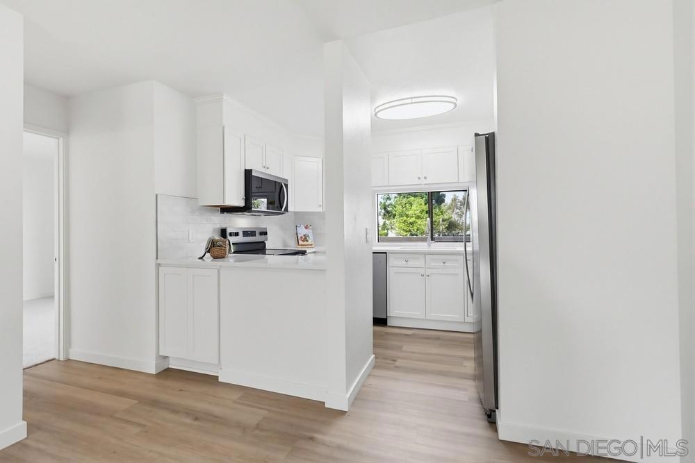 Come see this remodeled UTC condo with brand new appliances, flooring, kitchen & baths. Living is easy with super low HOA dues at $313/month! This lovely, single-level home is only 1 floor up with garage directly below and 2 private decks. Overlooking the resort-style community pool, the generously proportioned main bedroom has 3 floor-to-ceiling, mirrored closet doors and comes with an ensuite bath. And, it's the perfect location, with easy access to the 52, 805 and 5, and all UTC restaurants and shops!