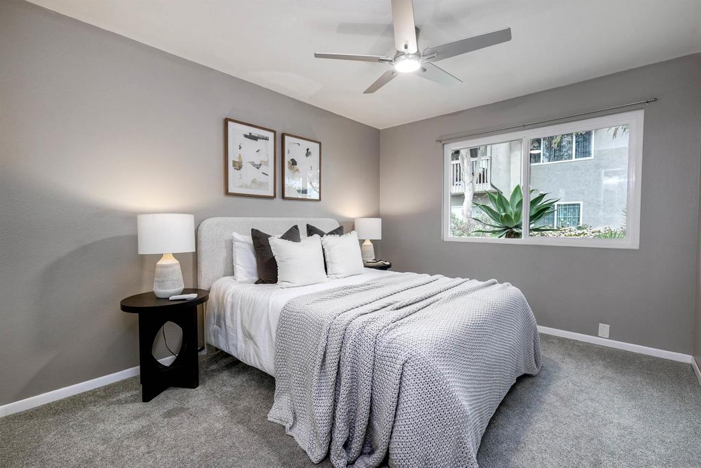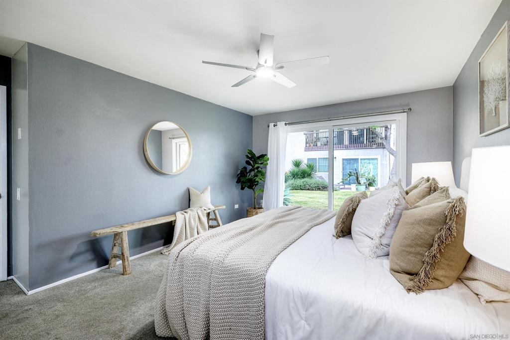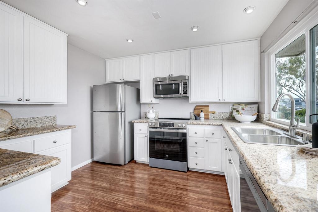 Beautifully updated townhome in Mission Valley! Open kitchen with granite counter tops and stainless steel appliances. Newer double paned high efficiency Milgard windows and sliding doors. Enjoy an open floor plan on the main level with a westerly view out the windows and off the spacious balcony to enjoy beautiful San Diego Sunsets every evening. The private balcony off living room is perfect for outdoor dining. The main level has the primary with an en suite bathroom and two additional bedrooms that share a full bathroom. An additional and very spacious 4th bedroom was added on the bottom level. It can also be used as an expansive office or media room. There is a peaceful patio/ grassy yard-like area off primary. There is an attached 2 car garage with plenty of storage!