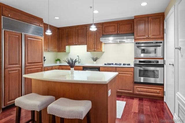 Elevated living the in this sub-penthouse at Renaissance with almost 4,000 SF of panoramic and unobstructed western and northern views. Flooded with natural light through walls of telescopic windows which slide all the way open, showcasing spectacular views of the bay, ocean and city to Point Loma, and past Coronado. This corner residence boasts 3 huge bedrooms plus an office surrounded by glass walls with the most stunning views ever, 2 stories, 4 balconies and 2 fire places. Renaissance will soon have a brand new “street level” lobby and new resort style amenities as seen in the Virtual Tour. Upon entering, you are welcomed by cathedral ceilings that enhance the light-filled, open layout. The FIRST LEVEL showcases gorgeous maple hardwood floors flow throughout the living area, complemented by telescopic windows that fully open, inviting the soothing ocean breeze inside. The family room, featuring eastern views, opens to the kitchen equipped with an island, an under counter wine cooler, ample storage, and a walk-in pantry. Enjoy three walk-out balconies on this level: two offering eastern views and one facing west for stunning sunsets. Two fireplaces enhance the ambiance: one in the living area on the first level and another in the primary bedroom suite. Convenient for your friends and family, a large guest suite provides unobstructed panoramic water and city views, complete with custom shutters for adjustable light control and includes a walk-in closet and an ensuite bathroom with a multi-jet shower. Plus a powder room convenient for your guests. SECOND LEVEL: Bedroom two features a spacious layout, a gigantic walk-in closet, and a walk-in shower. The expansive primary suite spans boasts nearly 900 square feet and includes crown molding throughout. The fireplace creates a cozy atmosphere, complemented by a comfortable sitting area by the bay facing window. Enjoy a luxurious Jacuzzi tub, dual sinks, and a multi-shower fixture in the primary ensuite catering to your every need. Adjacent to the primary suite is a large office with stunning north and west views through walls of glass, showcasing sparkling water and city lights, along with enhanced privacy. A spacious and private balcony directly off the primary suite offers uninterrupted water views, perfect for romantic evenings or enjoying a good book while watching boats, yachts, and the cityscape extending to the mountains. Two side-by-side parking spaces and two storage areas—one large cage and a temperature-controlled storage room for valuable items like artwork. Renaissance will soon have a brand new “street level” lobby and new resort style amenities including a large landscaped courtyard w/ BBQ aren, 3 fire pits w/ a dining area, pool/spa, gym, community lounge w/ full kitchen, conference room, surveillance throughout the community & 24/7 desk attendants. Ground floor retail conveniently includes Postal Annex for easy Amazon returns, Discount Nutrition & Vitality Juice, Rolling Out Bakery, Vases Salon, iTan and Wells Fargo. Located across from Ralph’s 24 hr. grocery w/ cafes on every corner, steps to the waterfront and Little Italy & just minutes to airport & public transportation and a ferry ride to Coronado. Welcome to paradise!