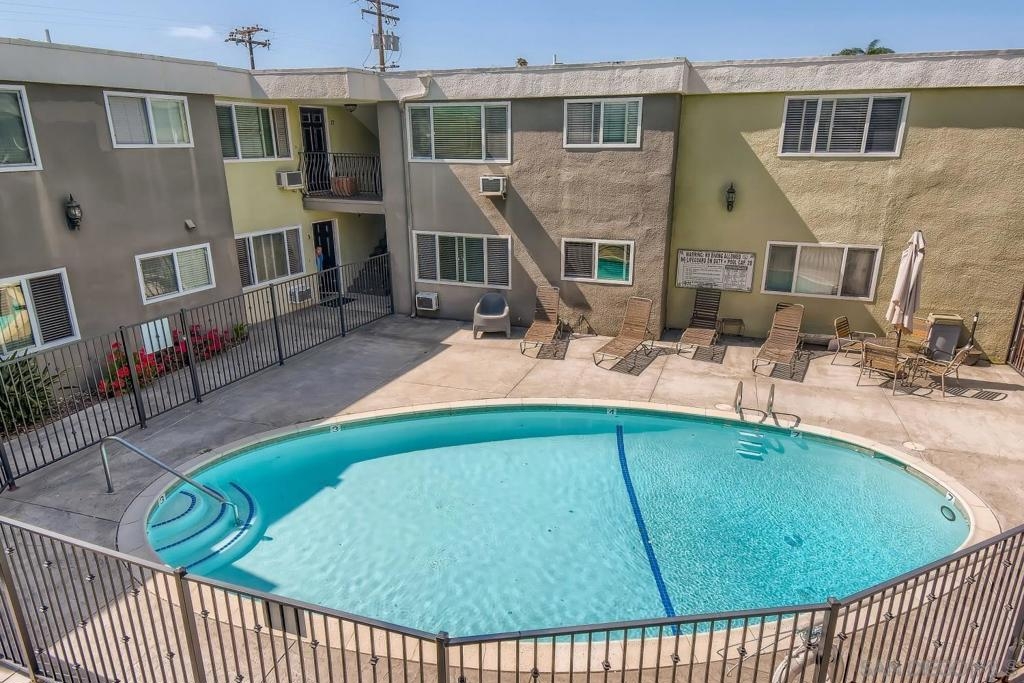 A Gorgeous Upgraded 2nd floor Condo in a Gated and secured Complex worth taking a look. Brand new carpet, Freshly painted interior, New Range/Oven, Large Bedroom and Living Room with Dining Area meticulously maintained, and shows pride of ownership. Granite Counter Top in Kitchen & Bathroom, SS appliances, Mirrored Master Bedroom and Linen Closet, this condo overlooks the community pool, and feels as if you are at a resort. It has one assigned parking in a gated area, parking #2 as shown in picture. Close to shopping, stores, all kinds of restaurants and entertainment...... ......easy accessibility due to Freeways 805 and 52 being close, near Mesa College and USD, and within minutes to the beaches, it is and ideal place to be in. Sewer: Sewer Connected Topography: LL