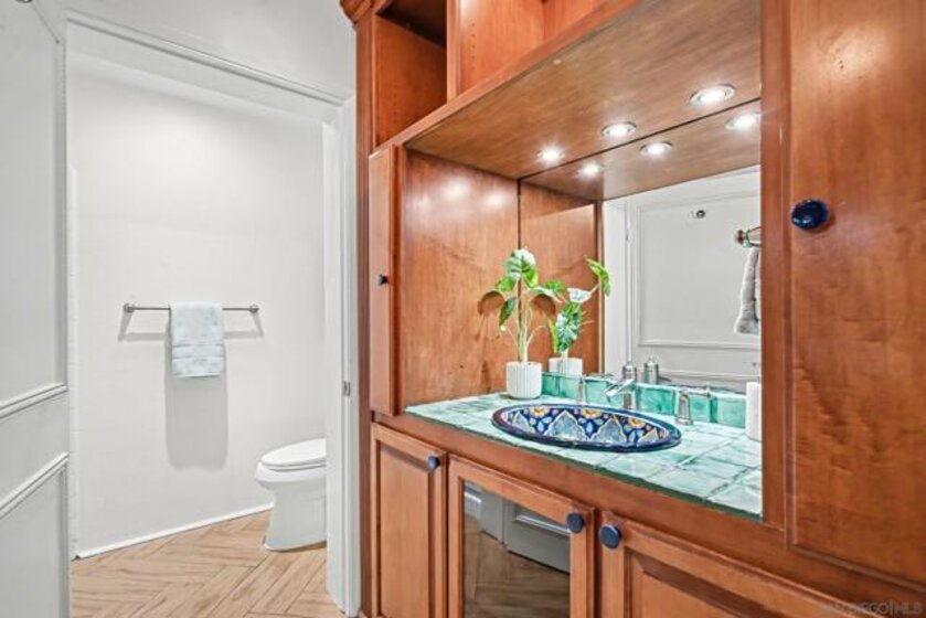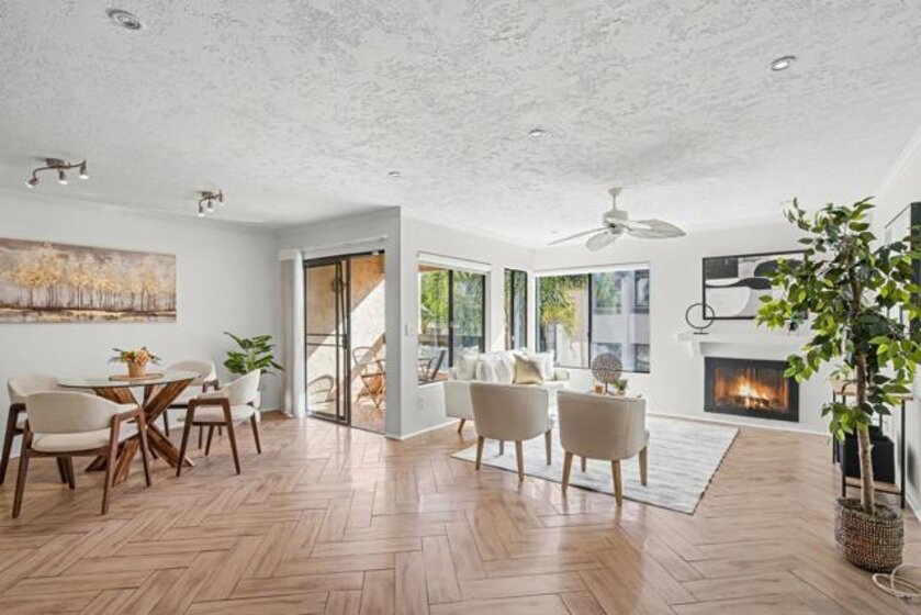 Experience the best of San Diego living in this bright and spacious end-unit located in the heart of Fashion Valley. Completely updated with luxury tile flooring throughout, this 3-bedroom, 2-bathroom home radiates modern charm. The remodeled kitchen is a delight, featuring sleek finishes and full-size appliances. Retreat to the primary suite offering a custom-built vanity and cabinetry, or cozy up by the living room fireplace. Unique features include a built-in bar for entertaining, in-unit laundry, and two private patios perfect for morning coffee. Mission Greens offers resort-style amenities including a pool, spa, two saunas, and a gym. Complete with a private storage room, one garage space, and one assigned spot. Centrally located near top-tier shopping and dining, and under 10 minutes to the beach, Downtown, and the airport. Welcome home!