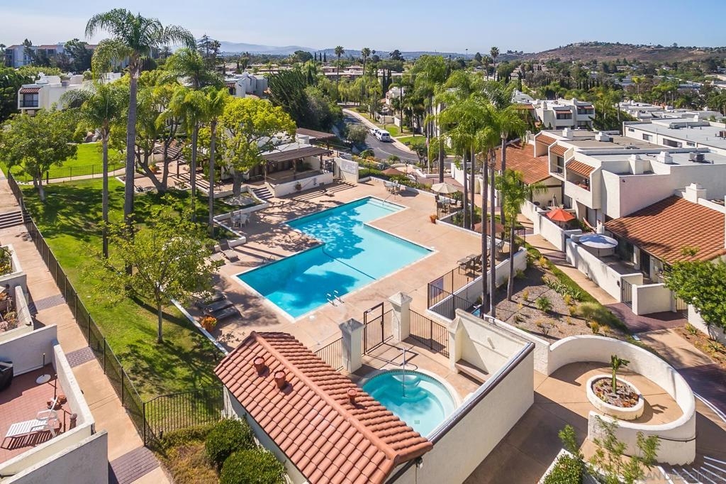 Highly coveted end-unit in Vista Del Cerro! Spacious living room with soaring ceilings, gas fireplace, and access to a private patio. Gourmet kitchen with granite counters, stainless steel appliances, and breakfast bar. Upstairs features a primary suite with tall ceilings, ample closets, and a private balcony, plus two additional bedrooms. Gated front patio and attached two-car garage. Community offers park-like grounds, pool, and clubhouse. Walk to highly rated Dailard Elementary and Patrick Henry High School. A true must-see!