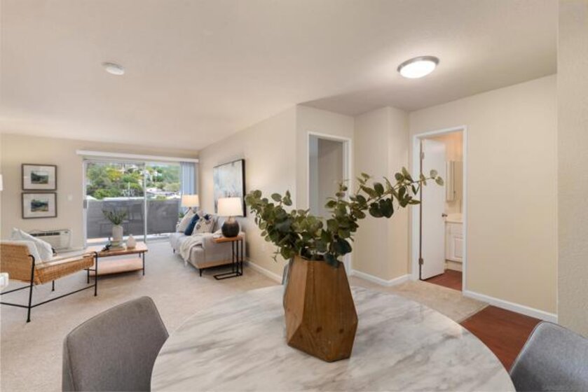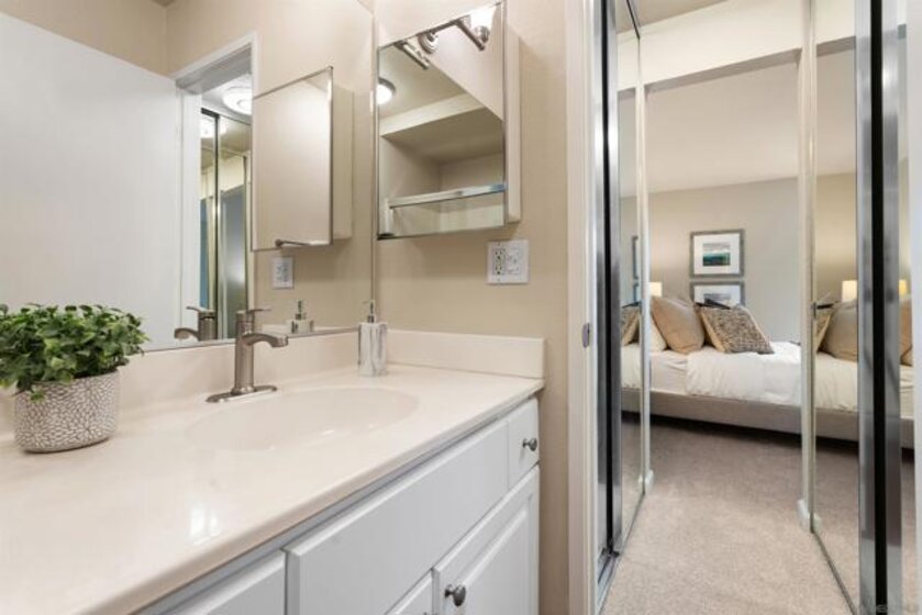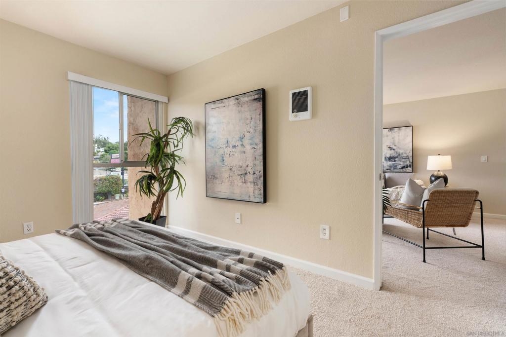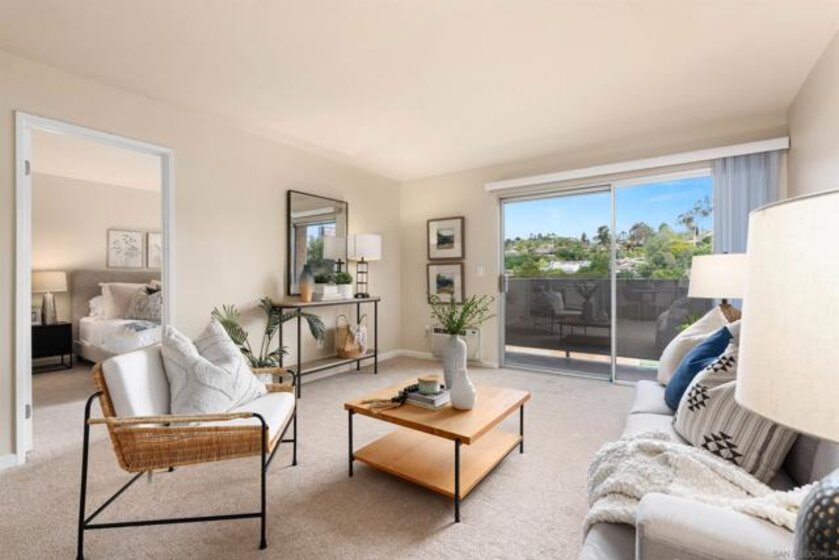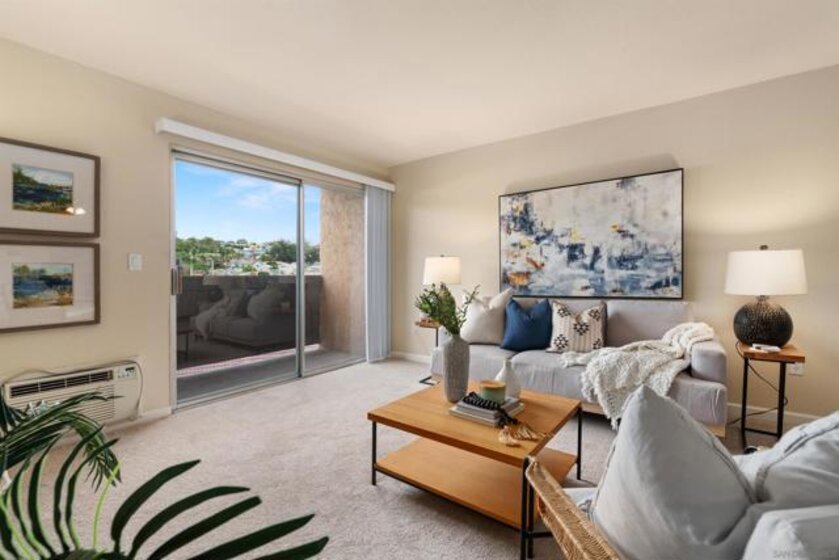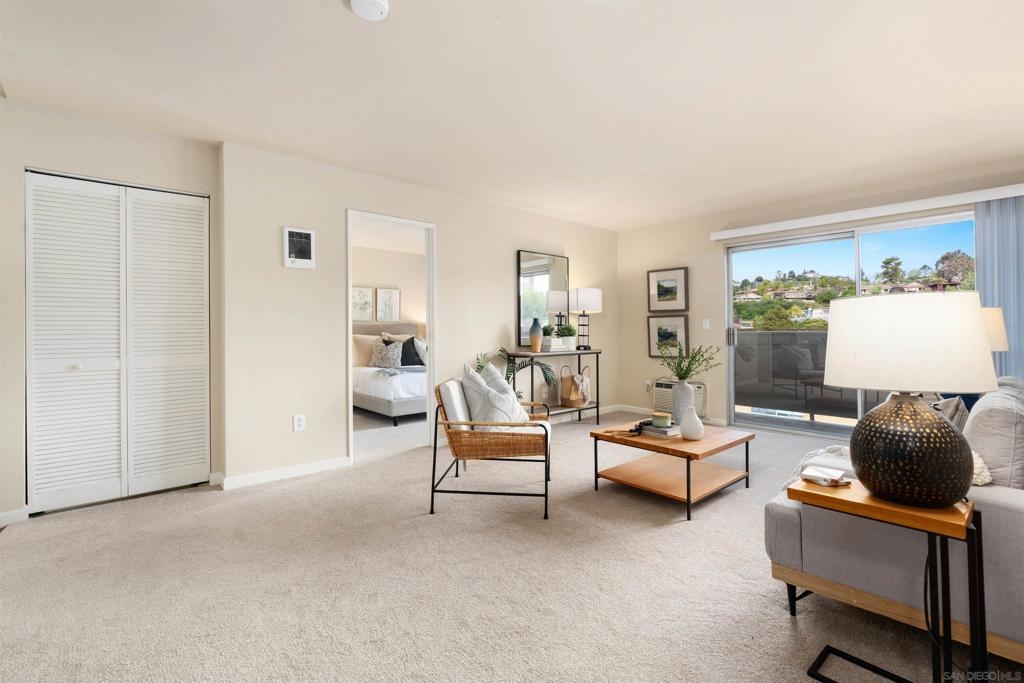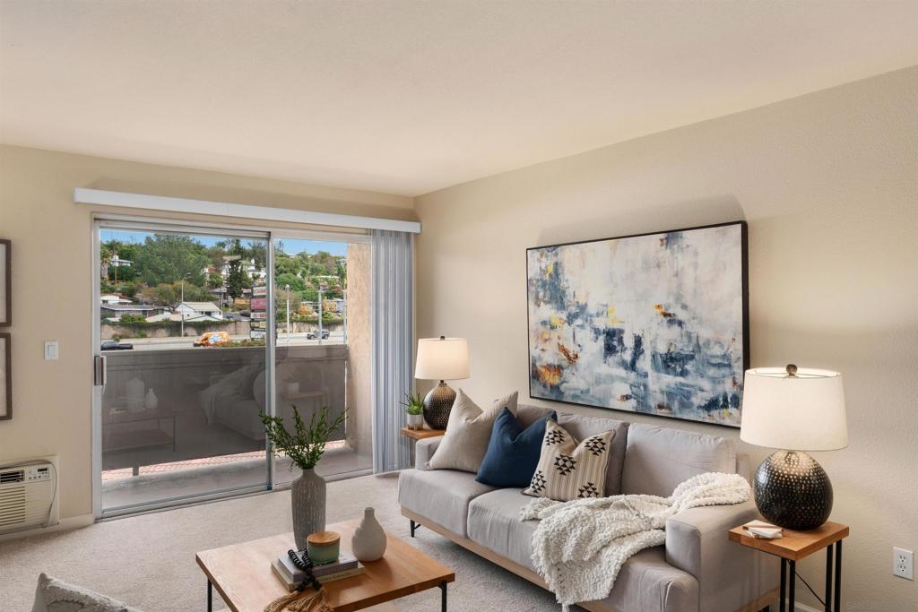 This terrific Del Cerro condo is located on the top floor of the complex. The unit features a wonderful open floor plan w/ split master suites, A NEW LARGE STACKED WASHER / DRYER IN THE LAUNDRY CLOSET & a good sized balcony which overlooks the pool. Among the many upgrades are fresh paint, new carpet, a wall AC unit, updated lighting fixtures and a new dishwasher. Please read the supplement for more! The complex is located close to SDSU, walking distance to the trolley and features a wonderful pool, BBQ area and plenty of grass to play on. Welcome home!