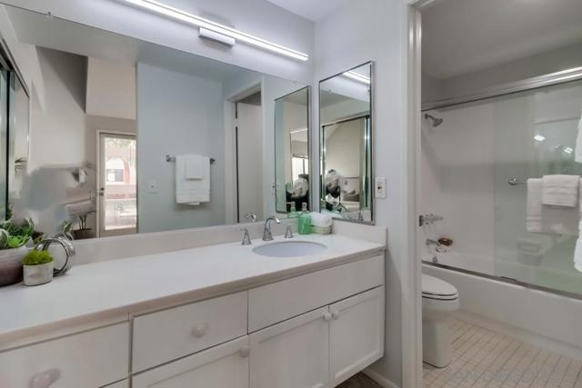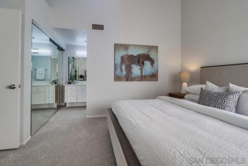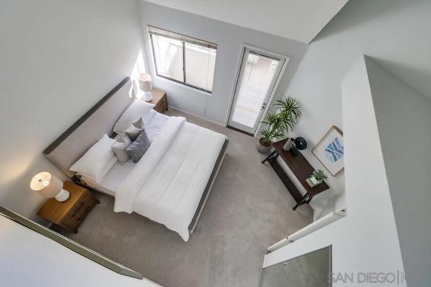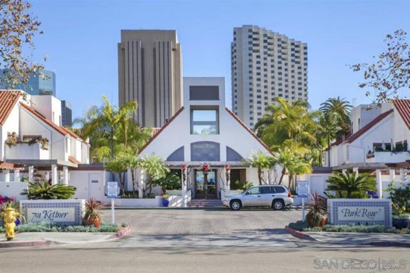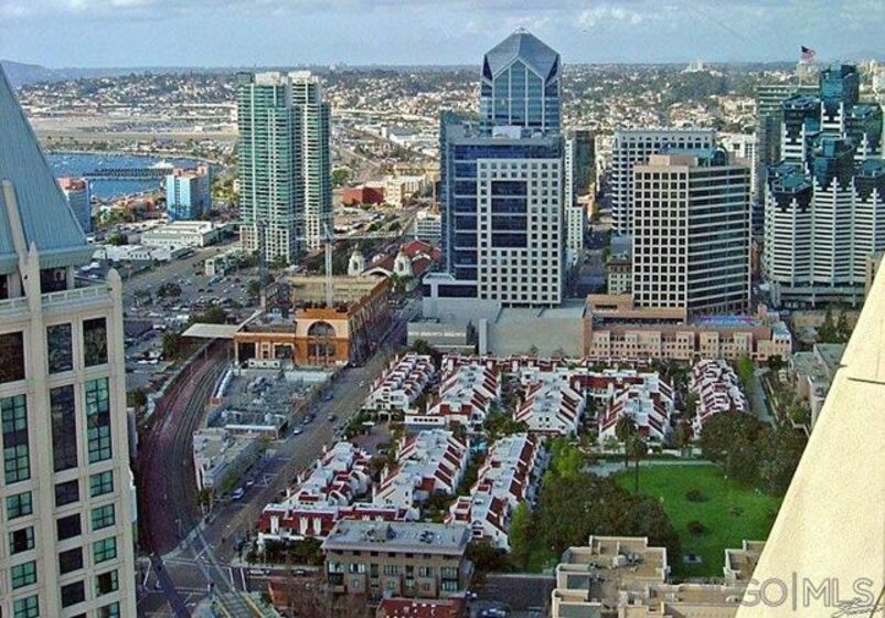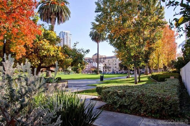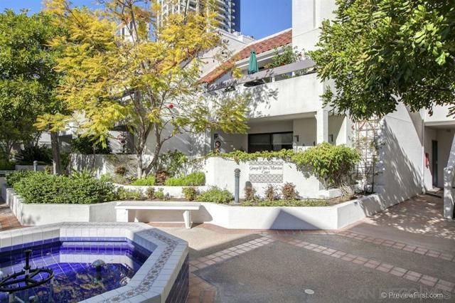 MAGNIFICENT SUN FILLED ONE BEDROOM PLUS LOFT IN THE ONE-OF-A-KIND SIX ACRE GARDEN OASIS "PARK ROW". Soaring 17 foot ceilings & no neighbors above! Brand new carpet & paint in 2023. New quartz counters & stainless sink, Brand new water heater. HVAC 6.5 years old. New light fixtures. Refreshed bath with new glass doors and new Kohler commode. The loft works as the perfect office or as a guest area complete with several closets . Added second bath with shower on loft level. Quiet interior location on the secluded Machado courtyard....not fronting streets or train tracks! Spacious south facing balcony. Year round heated pool and spa. MOVE-IN READY!!! MARINA DISTRICT'S ONLY LOW RISE GARDEN COMPLEX. SEE SUPPLEMENT FOR MORE NOTE: Optional 2nd "bedroom" is a loft which is open to the living room below. Large balcony can accommodate a dining set for 4 and more! Umbrellas and gas or electric BBQs are permitted on the balcony. Listing agent added 33 sf to the assessor estimate of 1017 to account for the added bathroom in the loft. This approx 33sf area used for the second bath was an inaccessible pre-existing block of unimproved space at the end of the loft hallway. ---------------------------------------------------Located in the quiet and upscale Marina District...short walks in every direction to the Bay, Convention Center, Little Italy, Seaport Village, trolley & AMTRAK. Only ten minutes to San Diego Airport! Park Row is a community of 222 units built on THREE GIANT CITY BLOCKS...this is stunningly low density when compared to nearly all other Downtown developments. The result is not only a generous apportionment of the grounds to gardens but unheard of space for the resort like pool, spa, clubhouse facility and guest parking. Stroll through the walkways of Park Row and enjoy the variety of trees and flowering plants...each courtyard has it's own unique garden & fountain style. Park Row is adjacent to Pantoja Park on G Street. Residents enjoy direct security gate access to the complex from this beautiful park. Pantoja Park is also the perfect place to take your dog for a walk and meet the neighbors! Park Row allows up to 2 pets with no weight limit. See HOA rules for more details. All units in Park Row come with one assigned parking space in the underground lot. Residents can rent an additional parking space for $60/month from the HOA. Ask agent about parking rules. Generous allowance for guest parking in the outside lot adjacent to clubhouse. Each unit has a small storage cabinet in the garage. Bike cage and bike "vaults" are available for rent from the HOA. Pool and spa are heated year round. On site manager and 24 hour guard service with video surveillance monitoring. Delivered packages are safely held in the clubhouse for pickup when you get home. And speaking of the CLUBHOUSE: It can be reserved for an nominal $30 fee for parties and private events!!