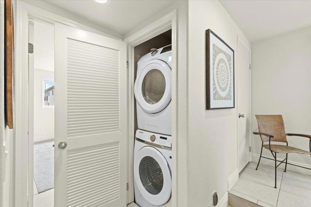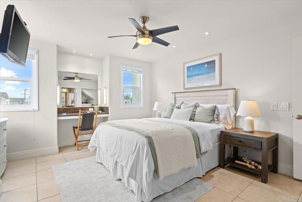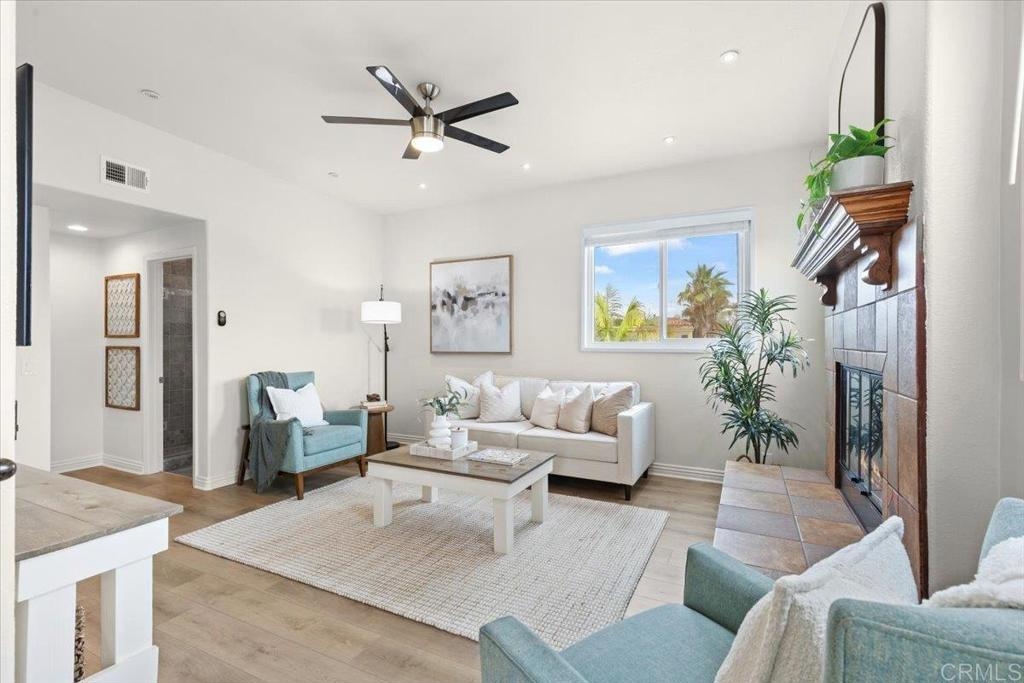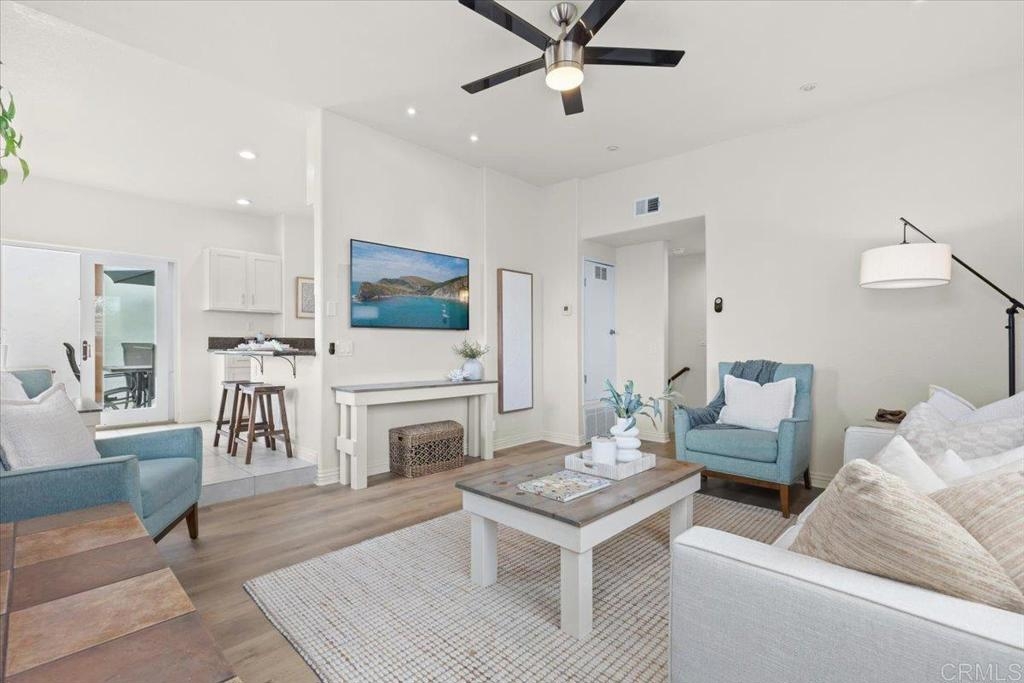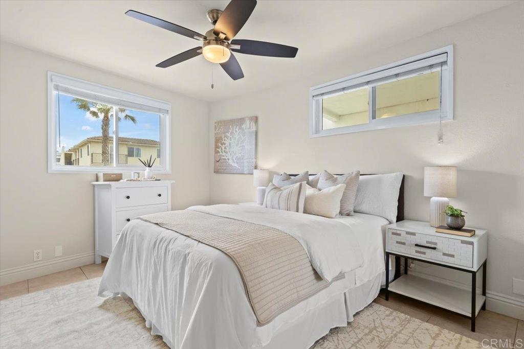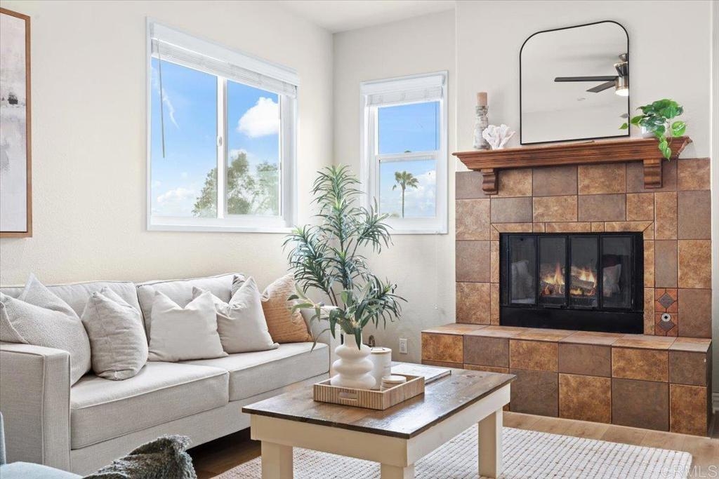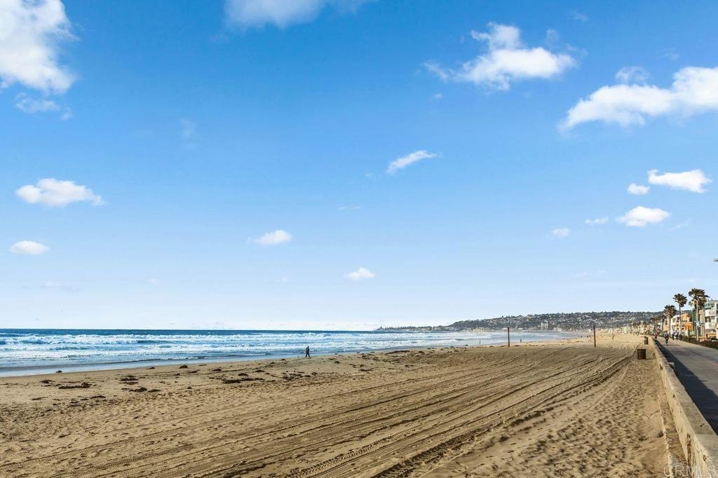Mission Beach | Steps to the Sand & Bay! Live the ultimate coastal lifestyle in this light-filled 2BR/2BA townhome just moments from the beach. Enjoy high ceilings, a cozy gas fireplace, and a private patio with peek bay views. Recent upgrades include new windows, water-resistant flooring, stainless appliances, a new microwave, updated baths, full-size in-unit laundry, and newer AC/HVAC. The oversized 2-car tandem garage features secure storage for all your beach gear. The building offers a shared ocean-view patio, new roof, fresh exterior paint, and stucco repairs. Ideal as a primary home or vacation rental. Located minutes from Belmont Park, shops, dining, and endless beach activities—surf, skate, bike, or watch dolphins from the shore. Coastal living at its best!