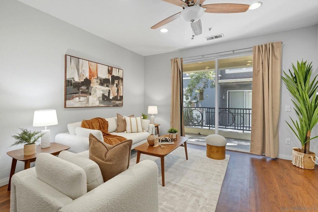 Discover this exceptional 4-bedroom, 3.5-bathroom townhome, perfectly situated in the heart of Kearny Mesa. The main level features an inviting living room, highlighted by a built-in entertainment center, serving as the ideal space for relaxation and hosting. This home's versatile three-story layout is a true standout, featuring three bedrooms with private en-suite bathrooms. The secluded first-floor suite is perfect for long-term guests or a dedicated home office. This home also has the premium convenience of a rare side-by-side two-car garage. Across the street, Centrum Park offers a playground, two gated dog parks, and expansive green lawns for effortless recreation. With easy access to major freeways and Kearny Mesa's vibrant dining scene, this home flawlessly combines comfort, intelligent design, and a prime, central location.