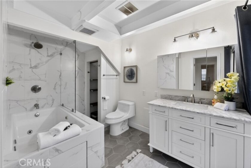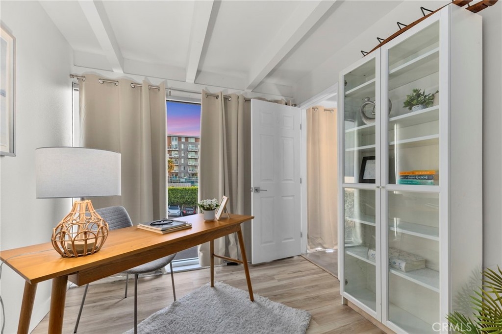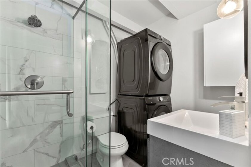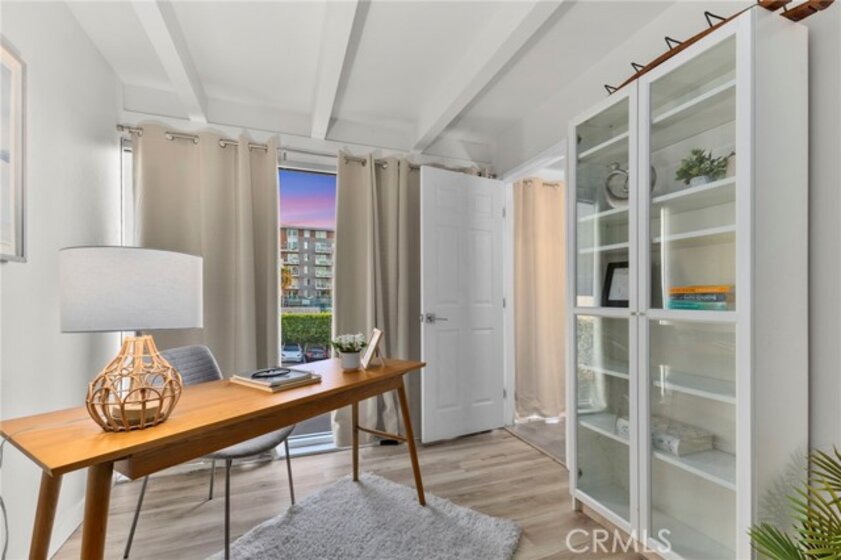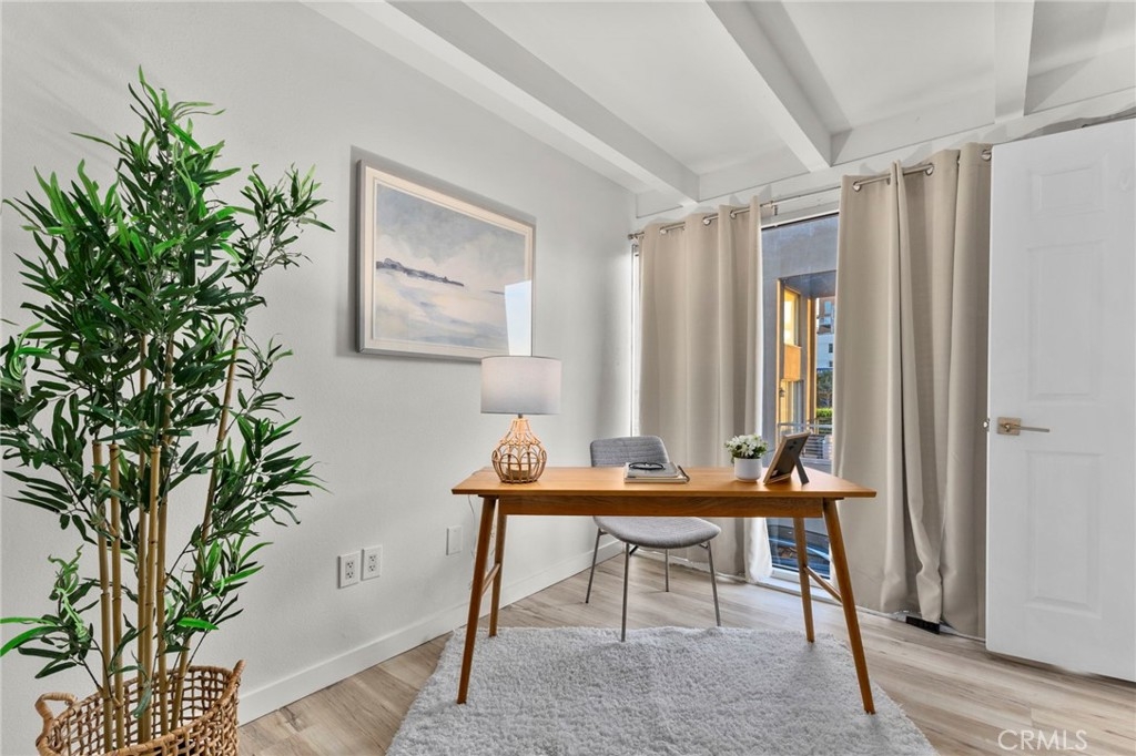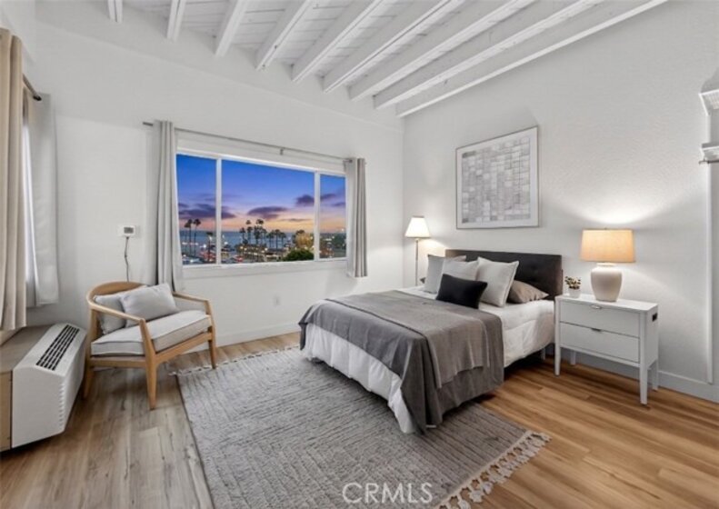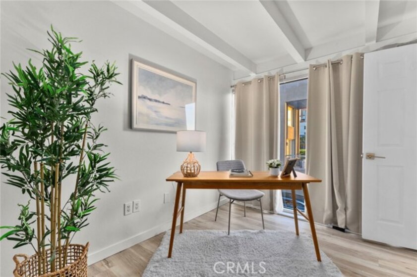 Jonathan Segal-designed loft in the heart of Little Italy, blocks from San Diego Bay. This 2 bedroom, 2 bath condo offers open-beam ceilings throughout, skylights, an exposed brick accent wall, and expansive windows that fill the home with natural light. The open kitchen features quartz counters, a breakfast bar, and stainless-steel appliances, connecting to the dining and living areas with views toward the bay and downtown skyline. Both bathrooms have been fully remodeled with modern vanities, elegant tile, a deep soaking tub, and glass-enclosed shower. A light-filled bonus room with bathroom access offers flexibility as an office, studio, or third bedroom. Step up to your dedicated rooftop area and take in sunset views over the marina, and the downtown skyline, accessed directly from the unit. Additional features include in-unit laundry, one gated covered parking space, and a storage closet. Located blocks from the weekly Mercato farmers market, India Street dining, cafes, and the bay, in one of San Diego's most walkable neighborhoods.