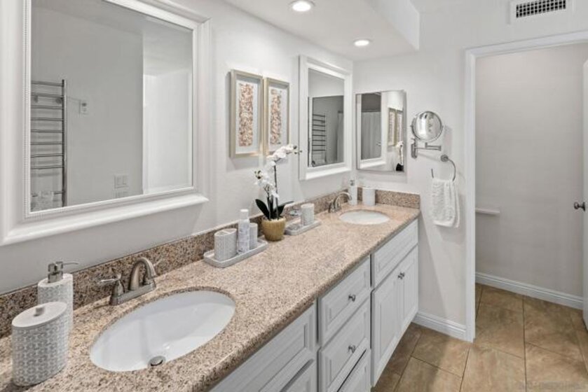 Welcome to 9985 Scripps Westview #41, a beautifully remodeled home that blends modern design with comfortable living. Rich wood floors flow throughout unit, creating warmth and continuity as you move through the open-concept layout. The thoughtfully redesigned and fully remodeled kitchen opens seamlessly to the living and dining spaces, featuring contemporary finishes and an ideal layout for both everyday living and entertaining. This unique floor plan offers two spacious primary bedrooms, each with its own private en suite bathroom, providing flexibility and privacy for residents or guests. Step outside to your private backyard space perfect for relaxing, dining al fresco, or enjoying San Diego’s year-round sunshine. Ideally situated within the community, the home is just moments from the community pool, making it easy to enjoy resort-style amenities whenever you like. With its modern upgrades, functional layout, and prime location, this home offers the perfect combination of style, comfort, and convenience.